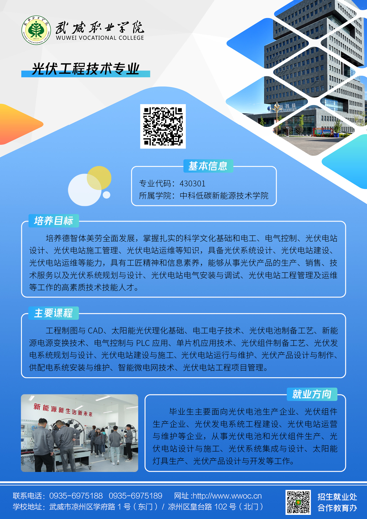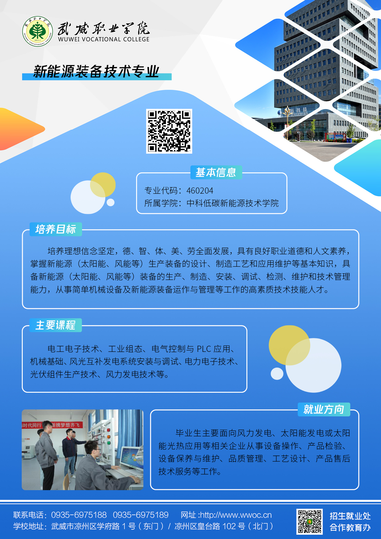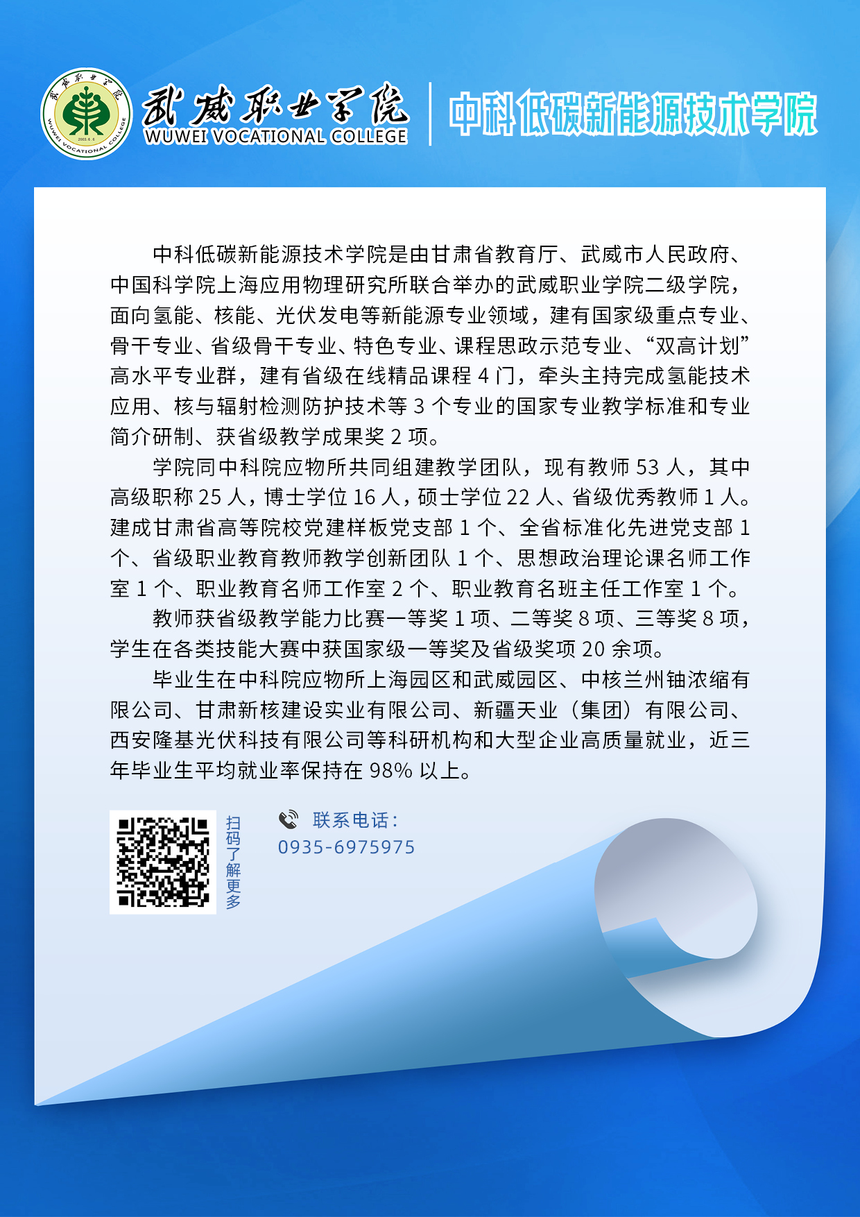 武威職業(yè)學院二級學院專業(yè)簡介丨中科低碳新能源技術(shù)學院