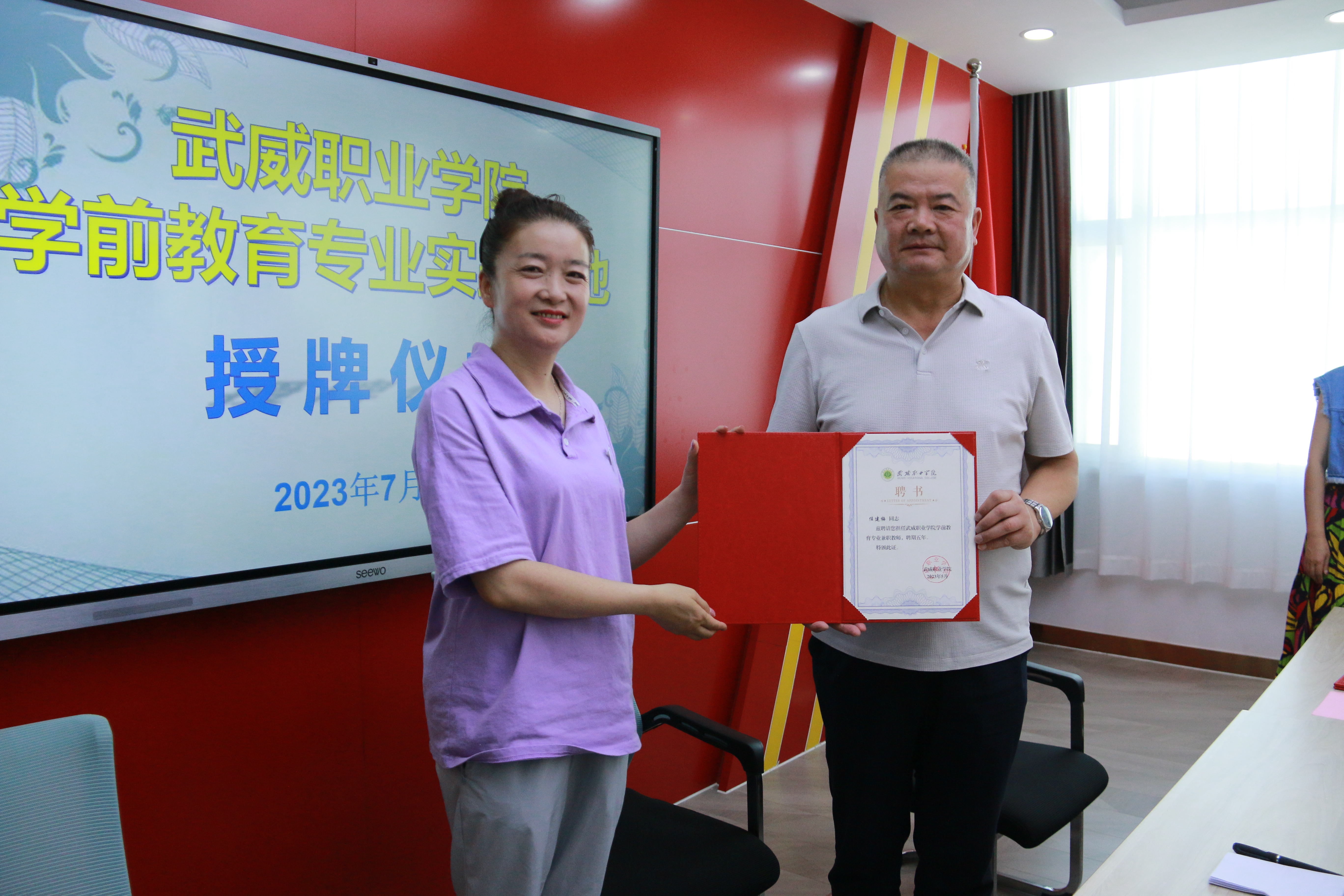王守云先后到武威市實驗幼兒園、涼州區(qū)第一幼兒園等6家幼兒園授牌,為受聘的學(xué)前教育產(chǎn)業(yè)導(dǎo)師、兼職教師頒發(fā)聘書,看望了見習(xí)學(xué)生和已就業(yè)的優(yōu)秀畢業(yè)生,參觀了園所環(huán)境,了解了幼兒園近年來的發(fā)展情況。雙方就深化產(chǎn)教融合,促進(jìn)人才培養(yǎng)質(zhì)量,學(xué)生實習(xí)就業(yè)等方面進(jìn)行了深入交流。