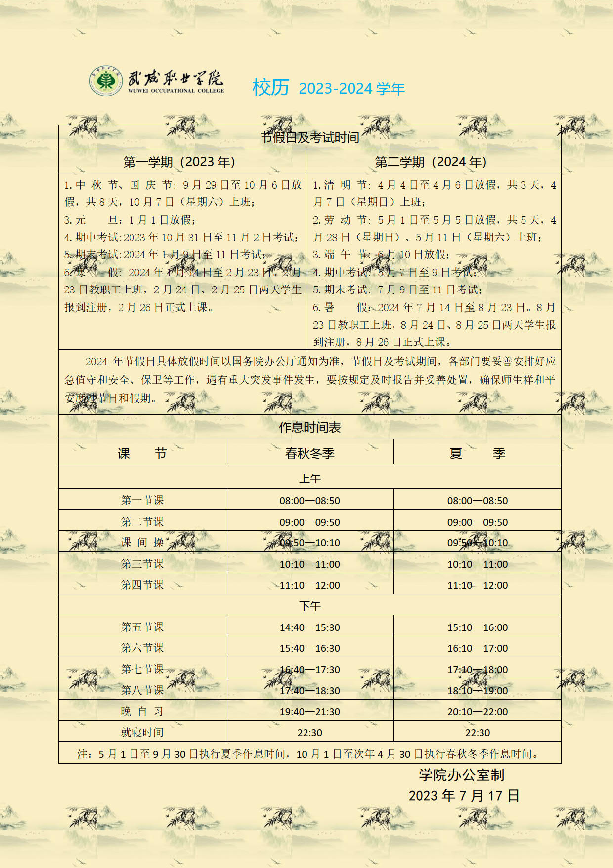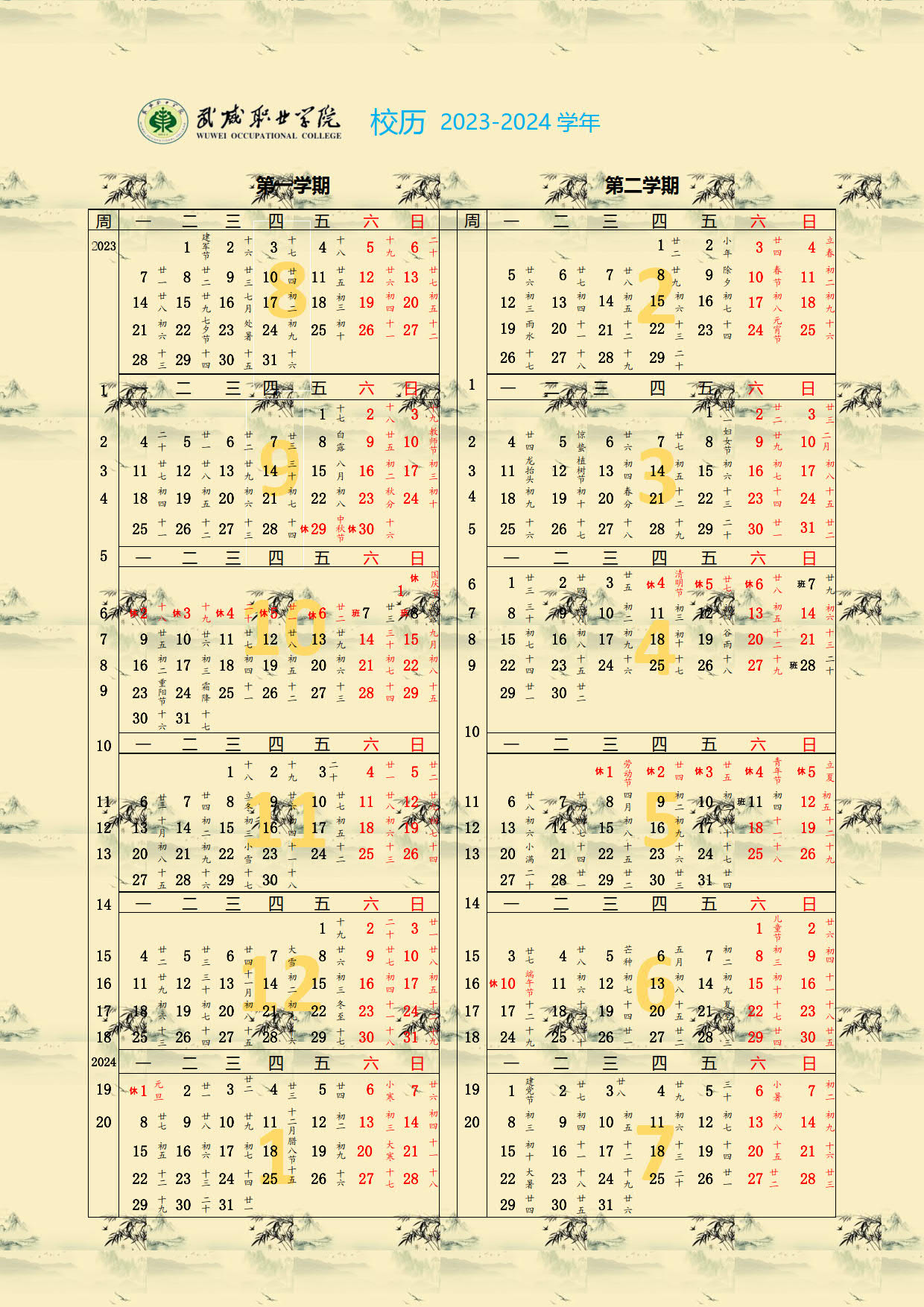 2023-2024學(xué)年校歷