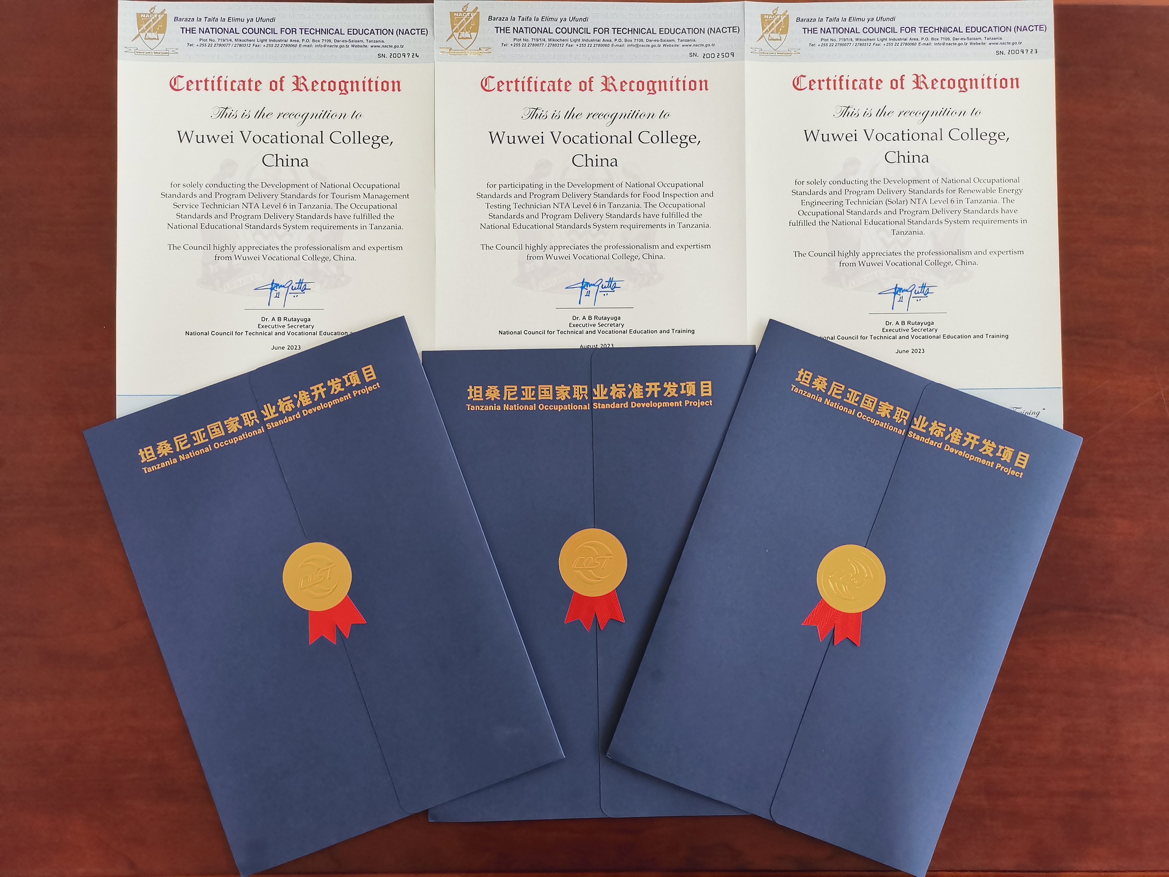 2022年9月,學(xué)校推薦旅游管理服務(wù)技術(shù)員6級(jí)、新能源工程技術(shù)員(太陽(yáng)能)6級(jí)、食品檢驗(yàn)檢測(cè)員6級(jí)三項(xiàng)職業(yè)標(biāo)準(zhǔn)申報(bào)第二批“坦桑尼亞國(guó)家職業(yè)標(biāo)準(zhǔn)開發(fā)項(xiàng)目”并成功獲得立項(xiàng)。項(xiàng)目啟動(dòng)建設(shè)以來,在中非職教聯(lián)盟、中坦雙方專家工作組、坦桑尼亞國(guó)家職業(yè)教育委員會(huì)的指導(dǎo)下,在學(xué)校堅(jiān)強(qiáng)有力領(lǐng)導(dǎo)下,經(jīng)濟(jì)管理學(xué)院、中科低碳新能源學(xué)院、現(xiàn)代農(nóng)業(yè)學(xué)院各自成立工作專班,結(jié)合實(shí)際制定項(xiàng)目實(shí)施計(jì)劃、實(shí)施方案,建立專項(xiàng)工作小組和工作機(jī)制,強(qiáng)化過程管理,確保后勤服務(wù),與坦桑尼亞國(guó)家職業(yè)教育委員會(huì)專家組進(jìn)行多輪次線上商討,經(jīng)過近一年的辛勤工作,形成了符合中國(guó)標(biāo)準(zhǔn),滿足坦桑尼亞需求的職業(yè)標(biāo)準(zhǔn),并配套提供與之相關(guān)的專業(yè)教學(xué)標(biāo)準(zhǔn),高質(zhì)量高標(biāo)準(zhǔn)完成項(xiàng)目建設(shè)。學(xué)校項(xiàng)目工作受到中非職教聯(lián)盟、坦桑尼亞國(guó)家職業(yè)教育委員會(huì)的高度肯定和贊揚(yáng)。