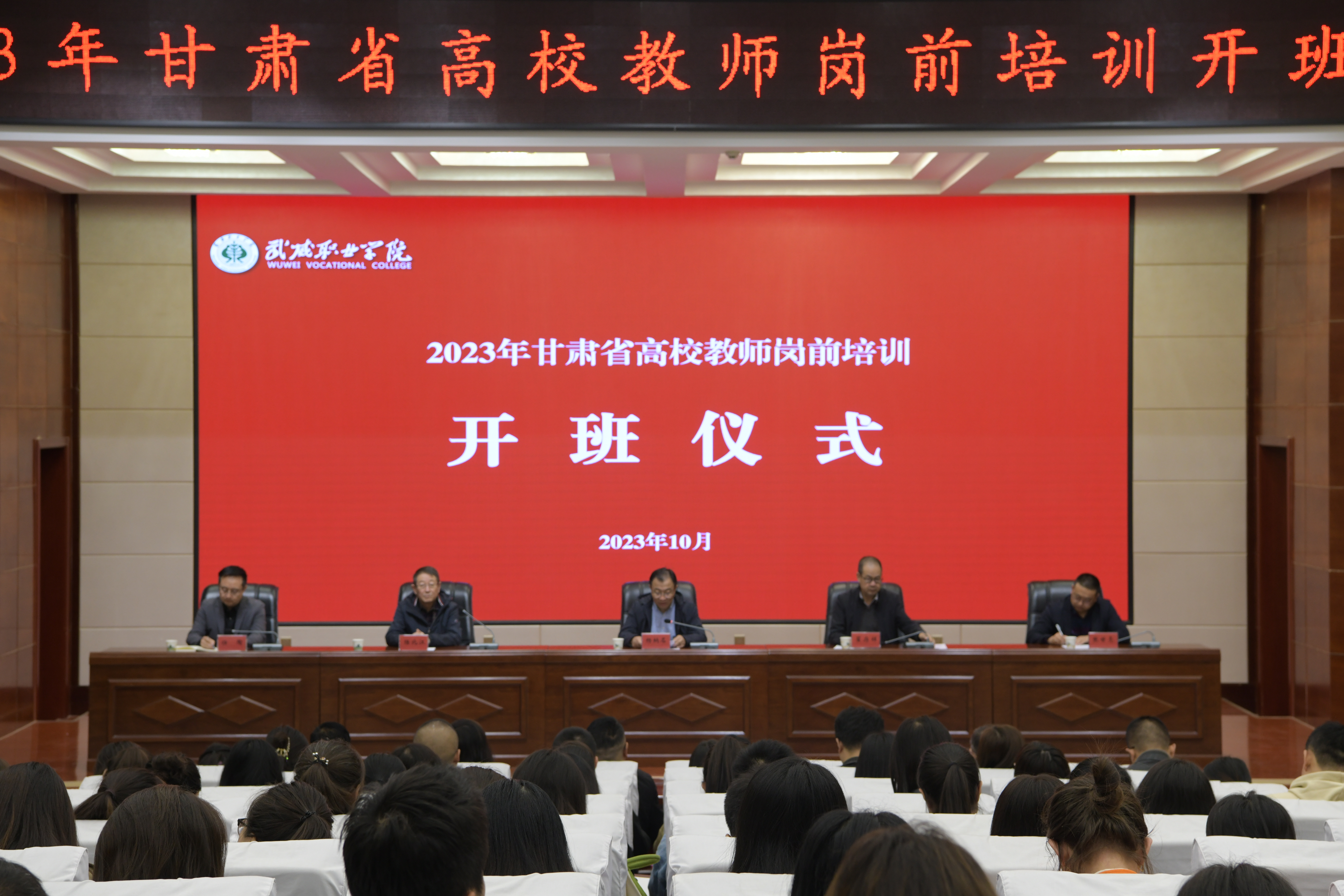 為深入學習貫徹習近平總書記教師節(jié)重要指示精神,引導廣大教師深刻領會教育家精神,牢記“為黨育人、為國育才”初心使命,樹立躬耕教壇信念,培養(yǎng)高素質教師隊伍,10月14日上午,我校2023年新教師崗前培訓教學班開班儀式暨第一階段集中培訓在學生發(fā)展中心菁英廳舉行。西北師范大學繼續(xù)教育學院院長、甘肅省高等學校師資培訓中心辦公室主任楊納名,武威職業(yè)學院黨委副書記翟存祥出席會議并講話,組織人事處、教務處負責人和180位新教師參加開班儀式。儀式由甘肅省高等學校師資培訓中心副主任陸北江主持。