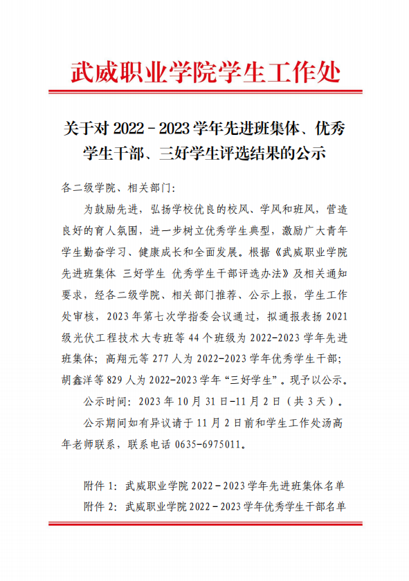關(guān)于對2022-2023學(xué)年先進(jìn)班集體、優(yōu)秀學(xué)生干部、三好學(xué)生評選結(jié)果的公示