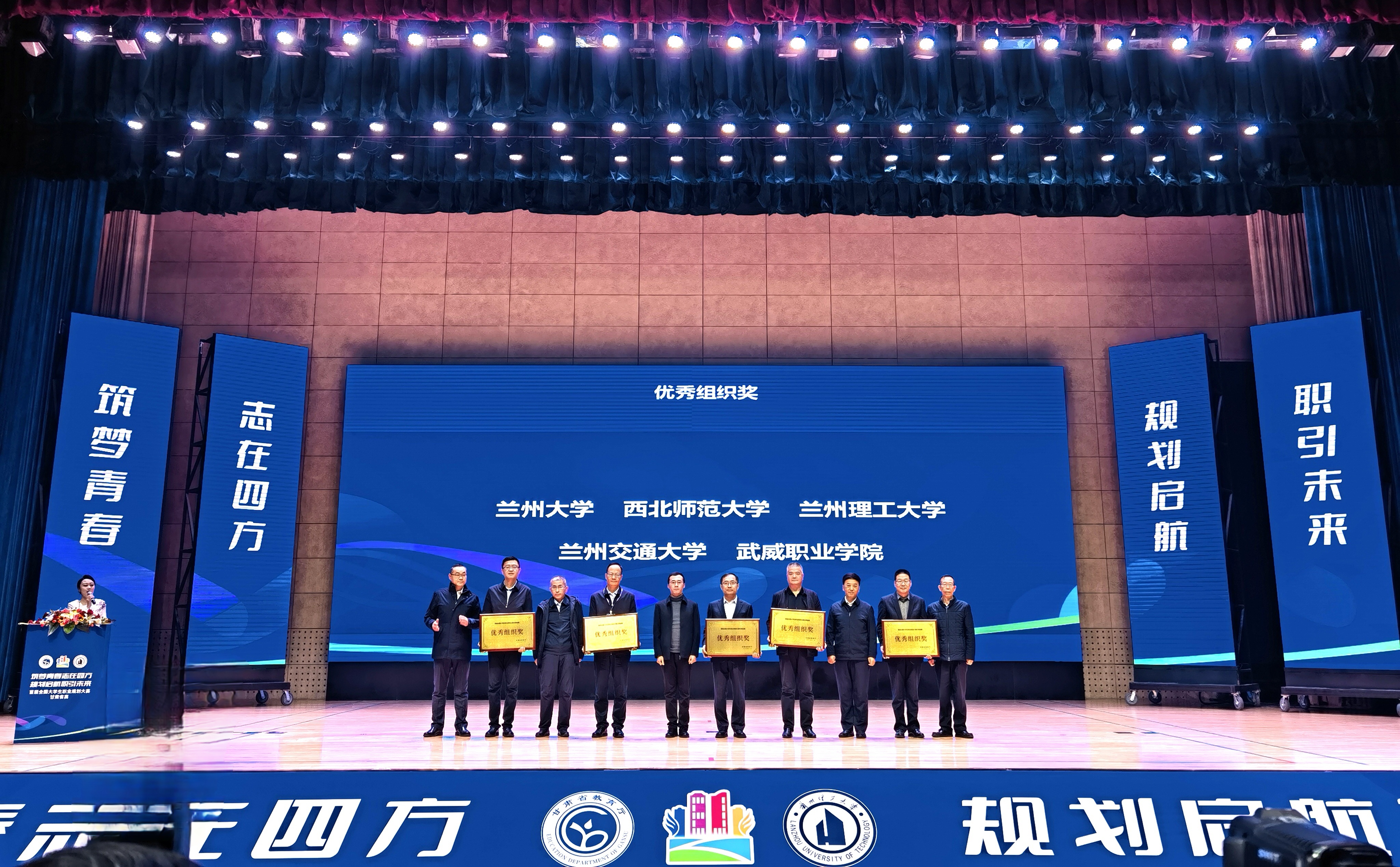 11月17日上午,“筑夢青春志在四方,規(guī)劃啟航職引未來”—首屆全國大學(xué)生職業(yè)規(guī)劃大賽甘肅省賽閉幕式暨頒獎(jiǎng)儀式在蘭州理工大學(xué)體育館舉行。我校黨委委員、副校長王守云,招生就業(yè)處負(fù)責(zé)人董鵬帶隊(duì)參加閉幕式暨頒獎(jiǎng)儀式。在職教組省級(jí)決賽中,兩個(gè)賽道分別設(shè)金獎(jiǎng)5項(xiàng),銀獎(jiǎng)10項(xiàng),銅獎(jiǎng)15項(xiàng)。我校代表隊(duì)榮獲金獎(jiǎng)2項(xiàng)、銀獎(jiǎng)4項(xiàng)、銅獎(jiǎng)4項(xiàng),獲獎(jiǎng)作品數(shù)目為全省第一。其中,經(jīng)濟(jì)管理學(xué)院2022級(jí)旅游管理專業(yè)學(xué)生顏汝榮獲成長賽道金獎(jiǎng)第一名,并在閉幕式上作匯報(bào)展演。