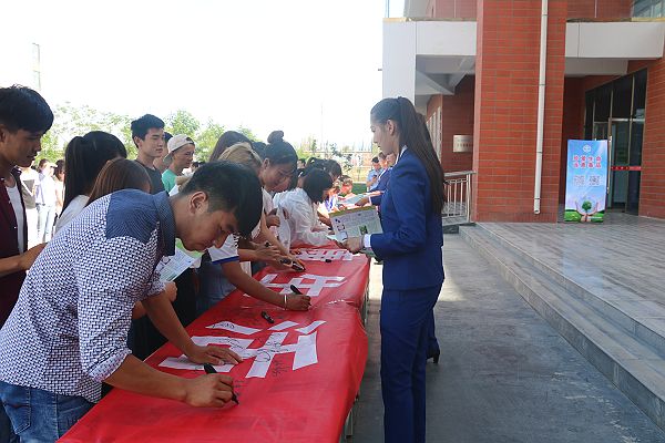 活動(dòng)中,王主瑞介紹了我國(guó)禁毒工作的基本情況和面臨的嚴(yán)峻形勢(shì),強(qiáng)調(diào)了青年毒品預(yù)防的重要性。學(xué)生代表王波波宣讀了禁毒倡議書,青年志愿者發(fā)放禁毒宣傳材料2000余份,在場(chǎng)師生在“青春無(wú)毒·健康生活”主題條幅上進(jìn)行承諾簽名并觀看了毒品預(yù)防知識(shí)宣傳展板。