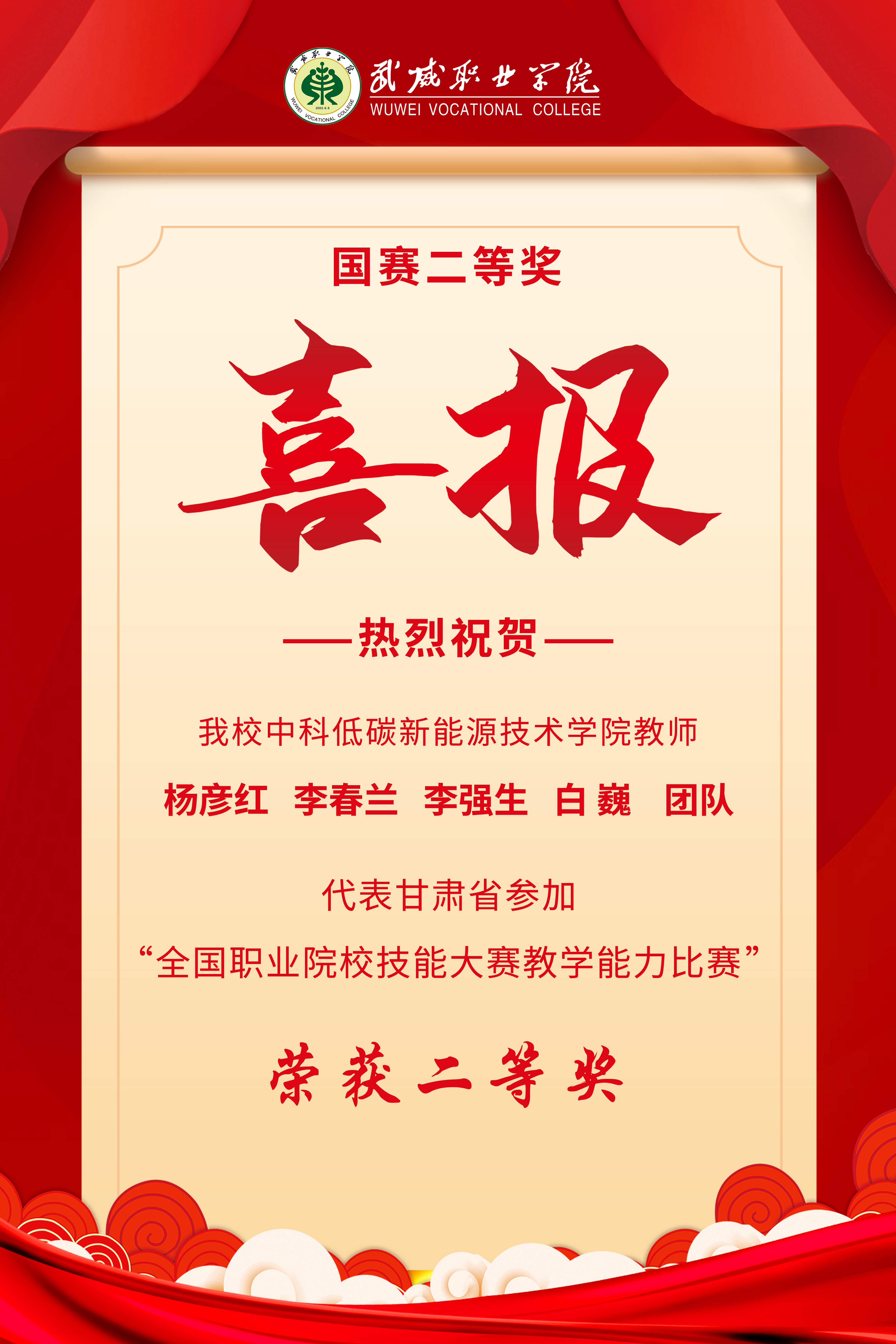 -- ——我校楊彥紅團(tuán)隊(duì)喜獲全國職業(yè)院校技能大賽教學(xué)能力比賽二等獎