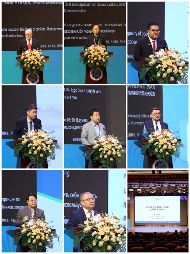 教育部國際合作與交流司副司長賈鵬線上致辭;甘肅省委教育工委書記、省教育廳廳長張國珍,省政府外事辦副主任趙軍出席并致辭;甘肅省委教育工委專職副書記鄭鈺出席;西北師范大學(xué)黨委書記賈寧出席開幕式并致辭,西北師大校長、黨委副書記王占仁主持開幕式。甘肅省教育廳,國(境)內(nèi)外院校相關(guān)機(jī)構(gòu)專家學(xué)者、省內(nèi)高校相關(guān)負(fù)責(zé)人及西北師范大學(xué)相關(guān)部門負(fù)責(zé)人和部分師生代表參加。學(xué)校黨委委員、副校長田迎春參加論壇。
