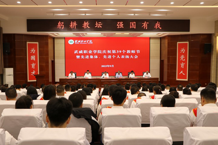9月8日上午,在第39個(gè)教師節(jié)即將來臨之際,武威職業(yè)學(xué)院慶祝2023年教師節(jié)暨先進(jìn)集體和先進(jìn)個(gè)人表揚(yáng)大會(huì)在菁英廳隆重舉行。學(xué)院黨委書記、校長趙明主持會(huì)議并講話,在家領(lǐng)導(dǎo)班子成員出席會(huì)議,中層管理干部、受表揚(yáng)的教師和師生代表參加會(huì)議。