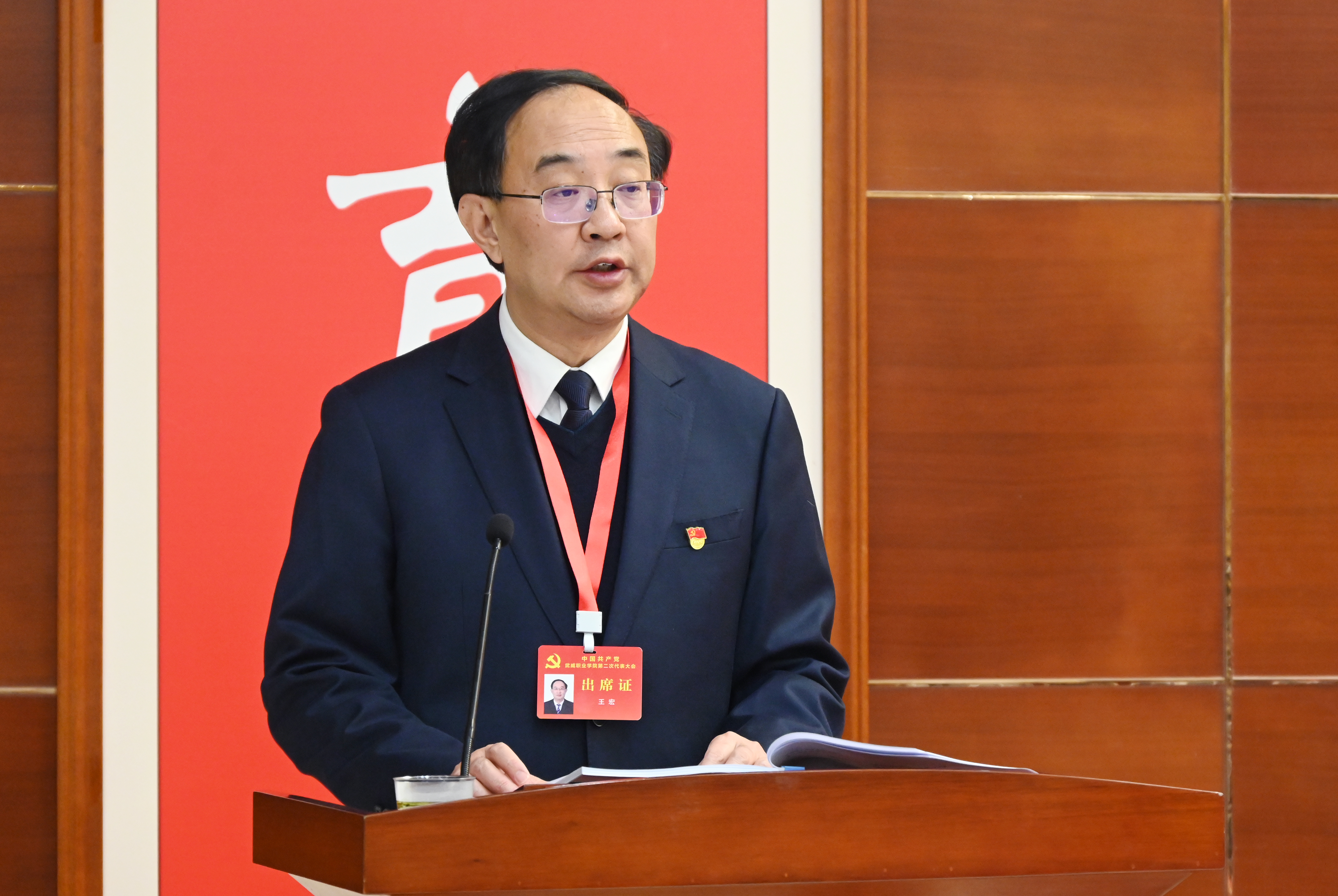 王宏同志代表中國共產(chǎn)黨武威職業(yè)學(xué)院第一屆委員會(huì)向大會(huì)作報(bào)告