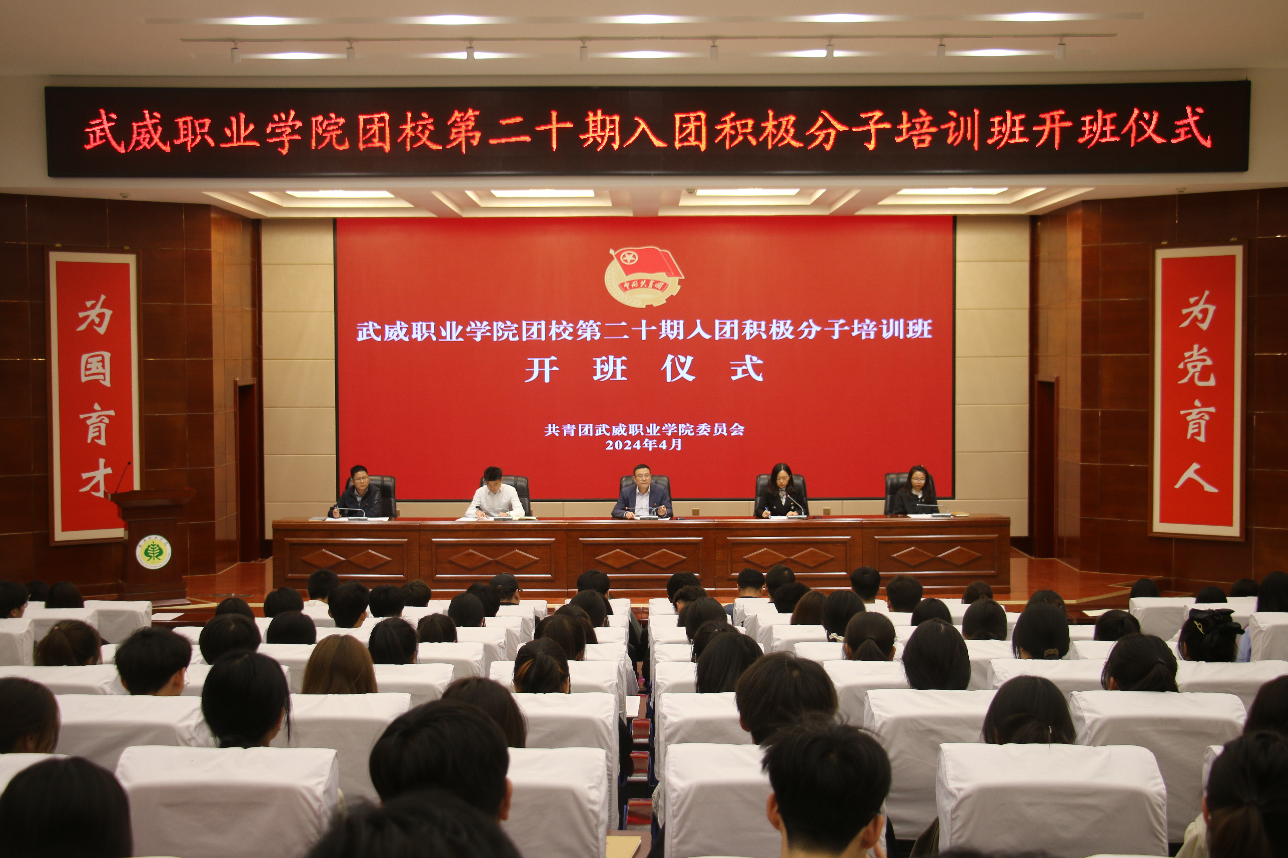 4月10日下午,學(xué)校團(tuán)校第二十期入團(tuán)積極分子培訓(xùn)班在菁英廳舉行開班儀式。校團(tuán)委全體干部、二級學(xué)院團(tuán)委書記及210余名入團(tuán)積極分子學(xué)員代表參加開班儀式。儀式由校團(tuán)委副書記謝麗霞主持。