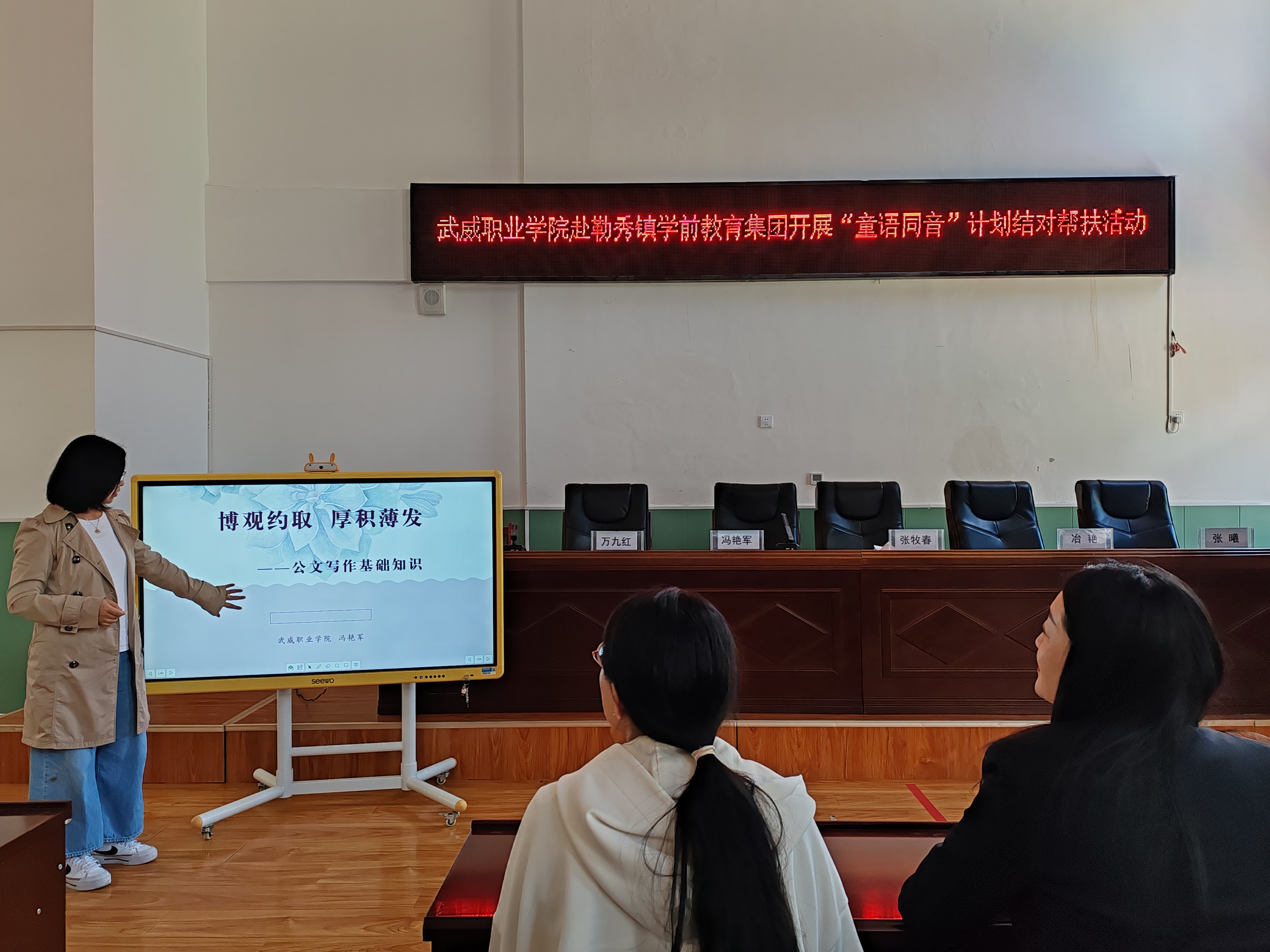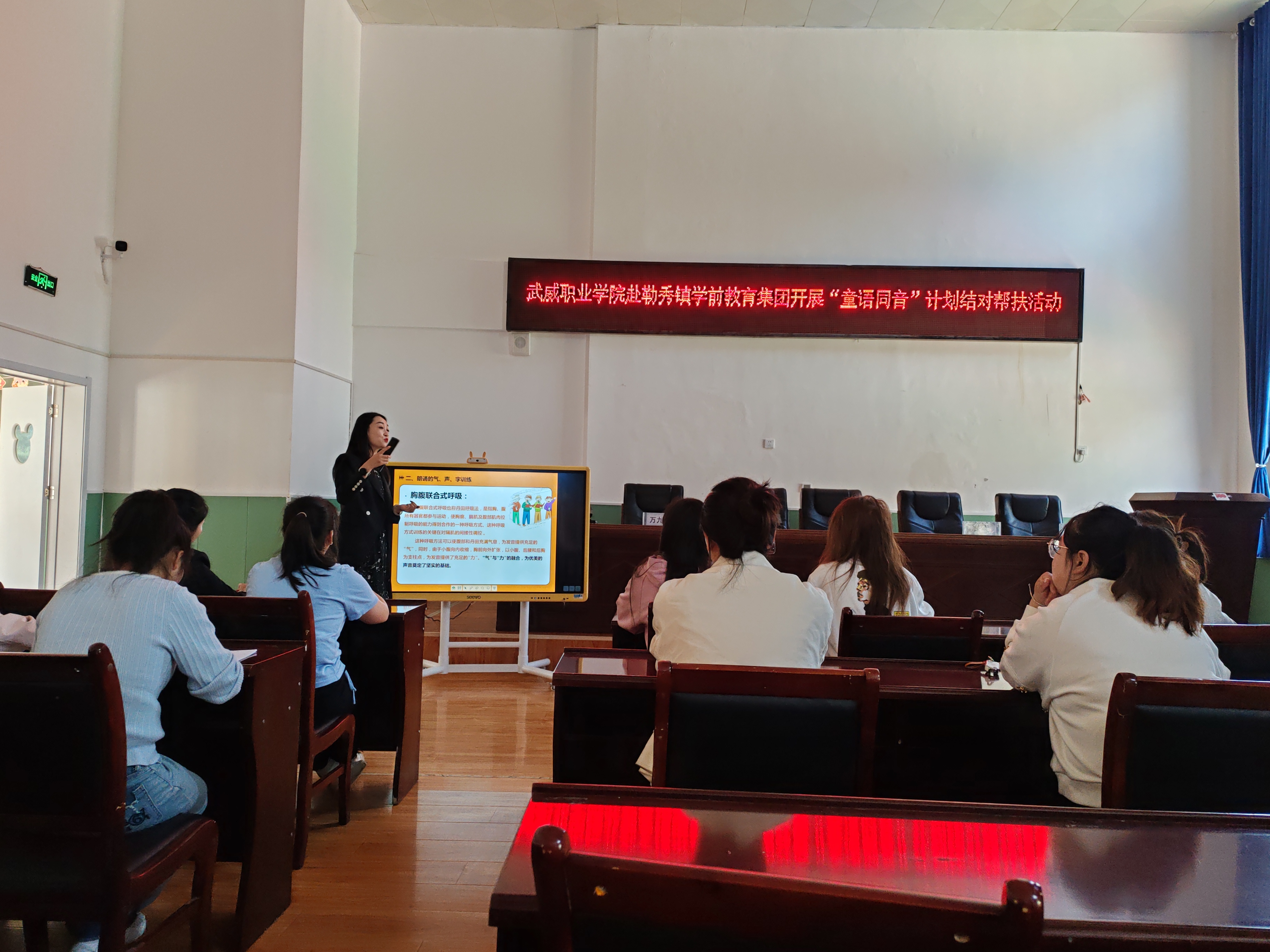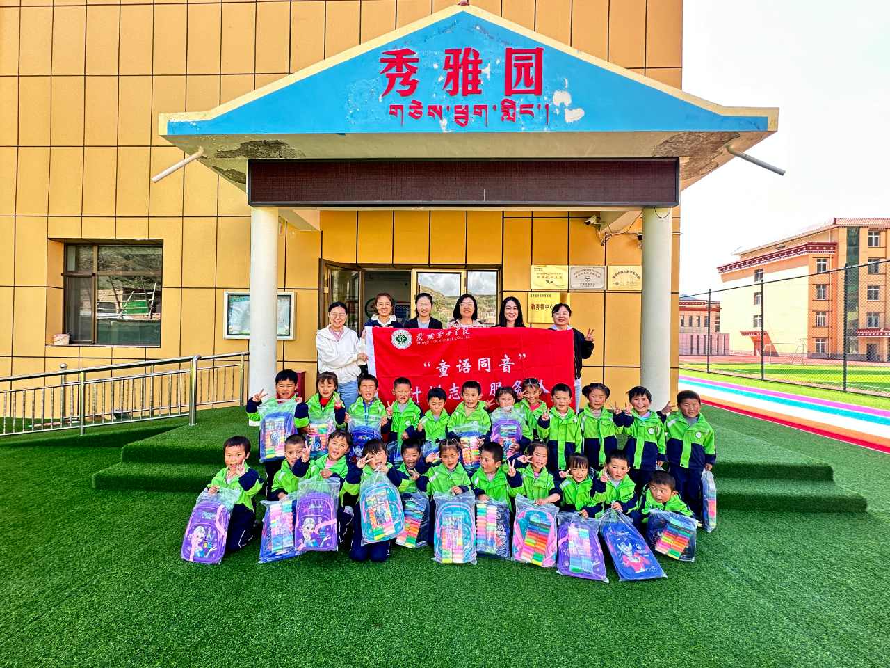 為充分發(fā)揮甘肅省語言文字推廣基地在服務(wù)地方發(fā)展、助力鄉(xiāng)村振興等方面的作用,6月23日,學(xué)校省級語言文字推廣基地“童語同音”志愿服務(wù)團(tuán)隊赴甘南藏族自治州勒秀鎮(zhèn)學(xué)前教育集團(tuán)開展“語言文字+技能”方面的培訓(xùn)。