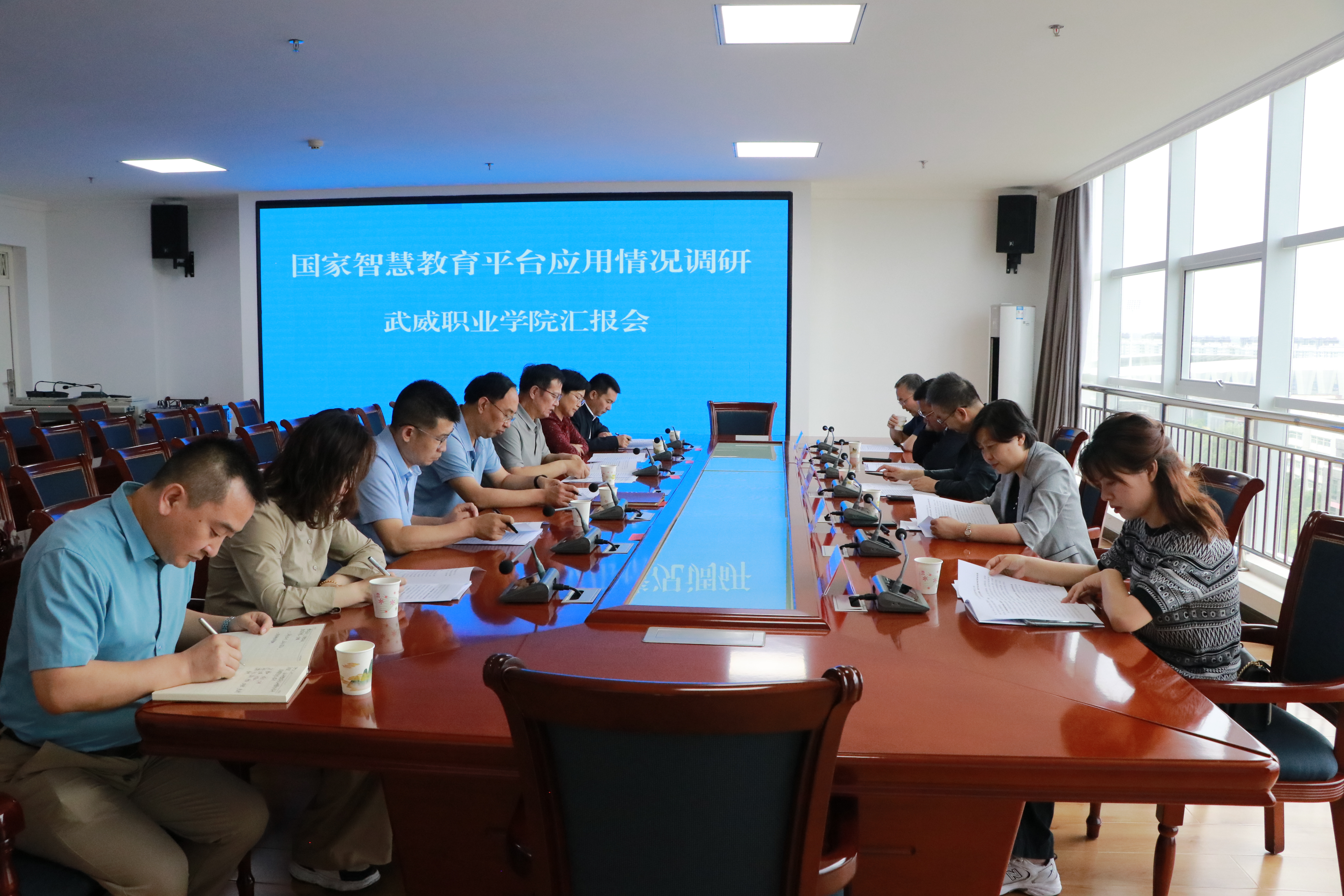6月20日,甘肅省電化教育中心黨支部書記、主任梁翔一行來學(xué)校調(diào)研國家智慧教育平臺應(yīng)用情況。武威市教育局黨組書記、局長王娟,學(xué)校黨委書記王宏,校長、黨委副書記張開禮,學(xué)校黨委委員、副校長何毅陪同調(diào)研。教務(wù)處和網(wǎng)絡(luò)安全與信息技術(shù)中心負(fù)責(zé)人參會。