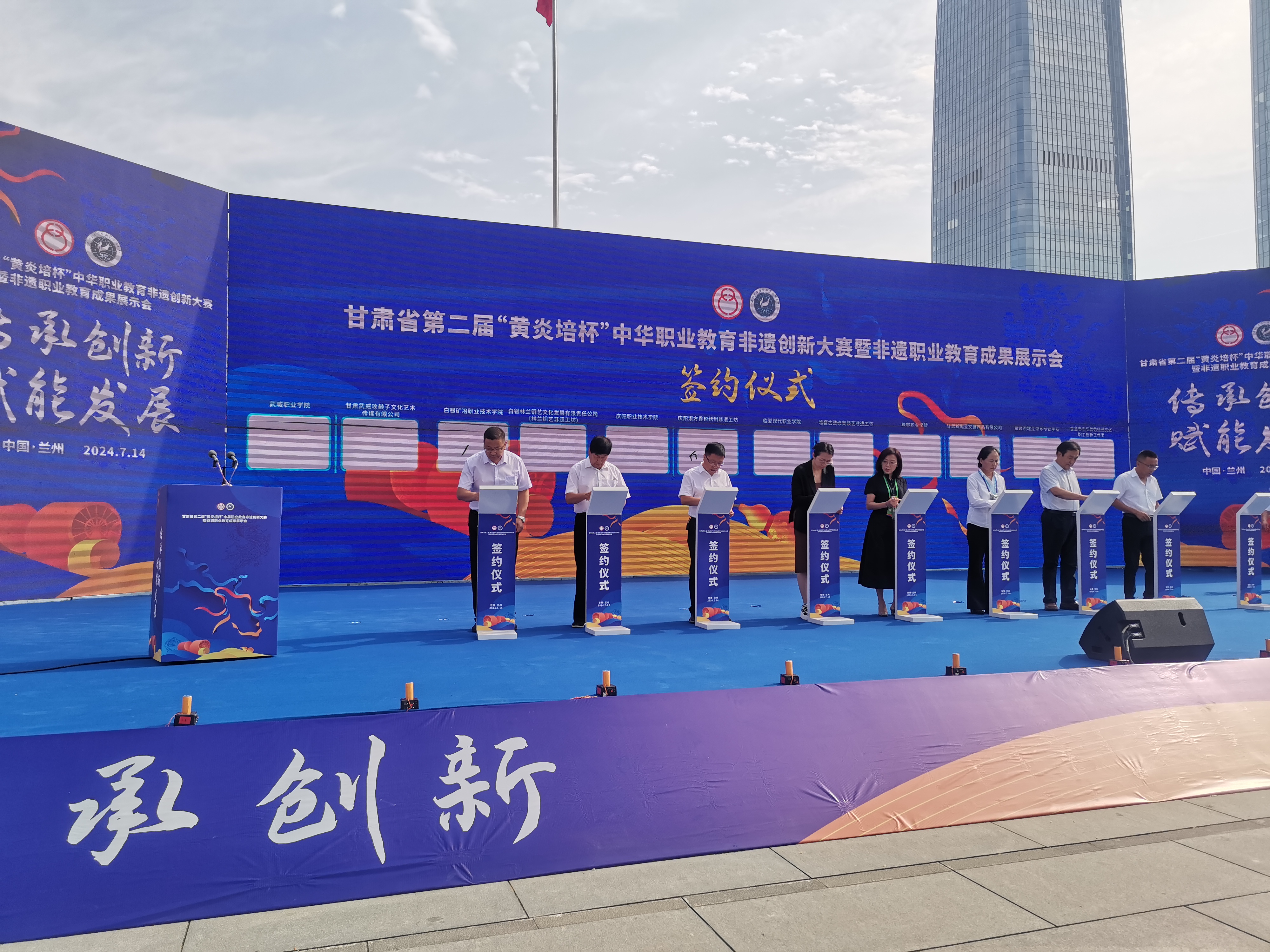 7月14日,甘肅省第二屆“黃炎培杯”中華職業(yè)教育非遺創(chuàng)新大賽暨非遺職業(yè)教育成果展示會在蘭州東方紅廣場舉辦。全省81所院校的240個項目團(tuán)隊和34家非遺工坊、非遺企業(yè)參賽、參展,參賽項目涵蓋雕刻、剪紙、刺繡、泥塑等多個非遺項目。