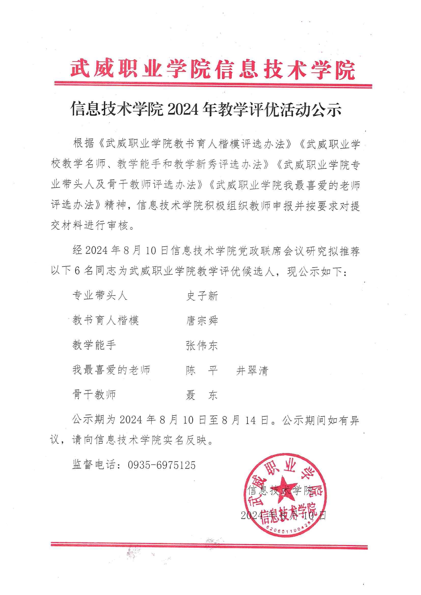 信息技術(shù)學(xué)院關(guān)于2024年教學(xué)評(píng)優(yōu)活動(dòng)公示