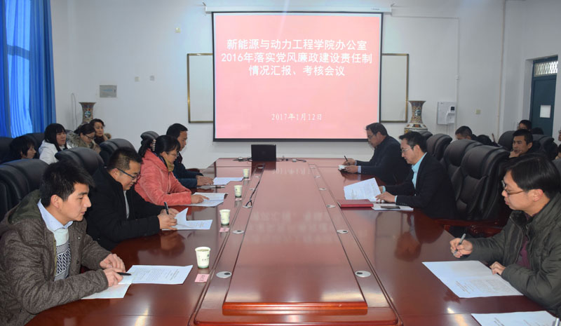 1月12日下午,學(xué)院副院長田迎春帶領(lǐng)學(xué)院第六考核組,對新能源與動力工程學(xué)院辦公室2016年度黨風(fēng)廉政建設(shè)和反腐敗工作進(jìn)行了全面檢查考核。新能源與動力工程學(xué)院全體教職工參加了會議。