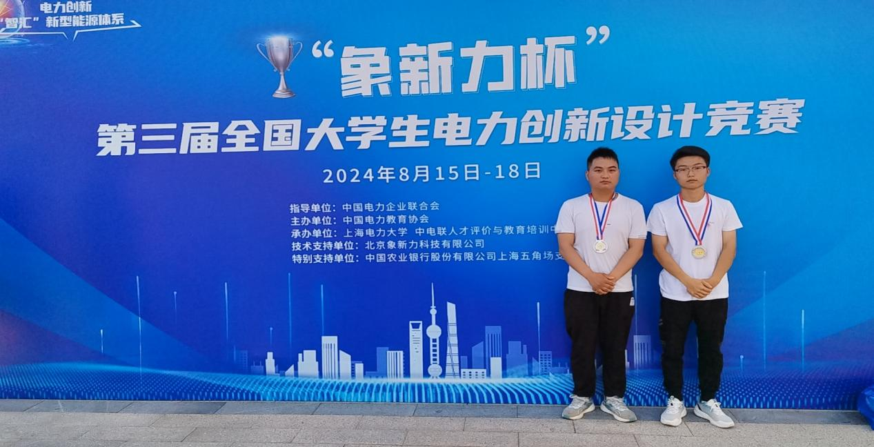 8月15-18日,“象新力杯”第三屆全國大學生電力創(chuàng)新設計競賽總決賽在上海電力大學(臨港校區(qū))圓滿舉行。來自全國114所高校的289支團隊共計1500余人共同參與,經過線上線下,匯聚智慧、碰撞創(chuàng)意、交流成果、比拼才能,我校工程技術學院參賽的2名同學獲決賽二等獎。