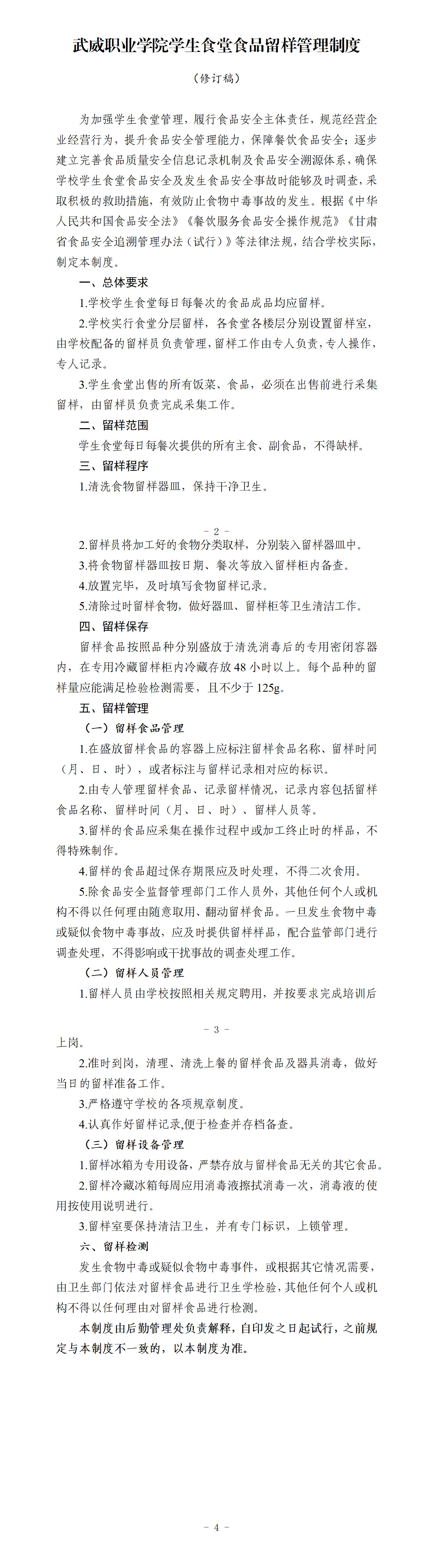 武威職業(yè)學(xué)院學(xué)生食堂食品留樣管理制度