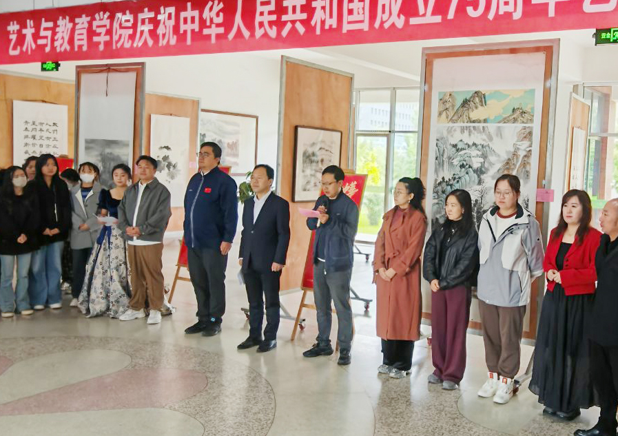 9月30日上午,藝術(shù)與教育學(xué)院慶祝新中國(guó)成立75周年藝術(shù)作品展在知新樓開(kāi)幕。學(xué)院黨總支書記王政、副院長(zhǎng)蘆小鵬,美術(shù)教研室全體教師及學(xué)生代表參加了開(kāi)幕式。
