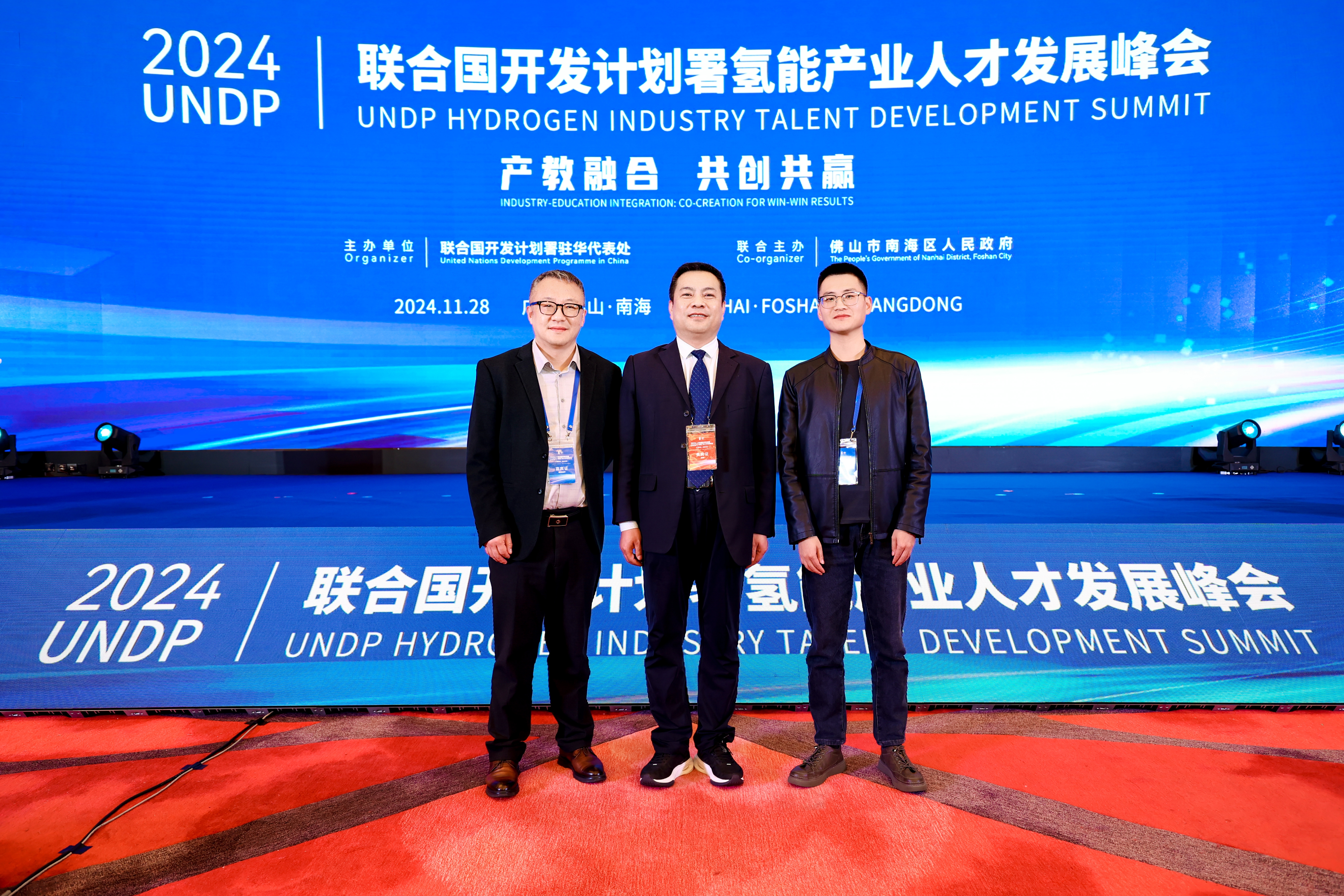 11月28日,由聯(lián)合國開發(fā)計劃署駐華代表處、佛山市南海區(qū)人民政府聯(lián)合主辦的UNDP(The United Nations Development Programme 聯(lián)合國開發(fā)計劃署)氫能產(chǎn)業(yè)人才發(fā)展峰會于佛山市成功舉行。本次峰會作為全國首個由國際機構(gòu)主導(dǎo)的國際氫能產(chǎn)業(yè)人才會議,聚焦氫能領(lǐng)域高素質(zhì)技能人才的培養(yǎng),推動產(chǎn)教深度融合,探索為產(chǎn)業(yè)發(fā)展提供重要技能型人才支撐路徑。我院中科低碳新能源技術(shù)學(xué)院院長黃述杰教授、王廣華博士和王續(xù)峰老師參加此次會議。
