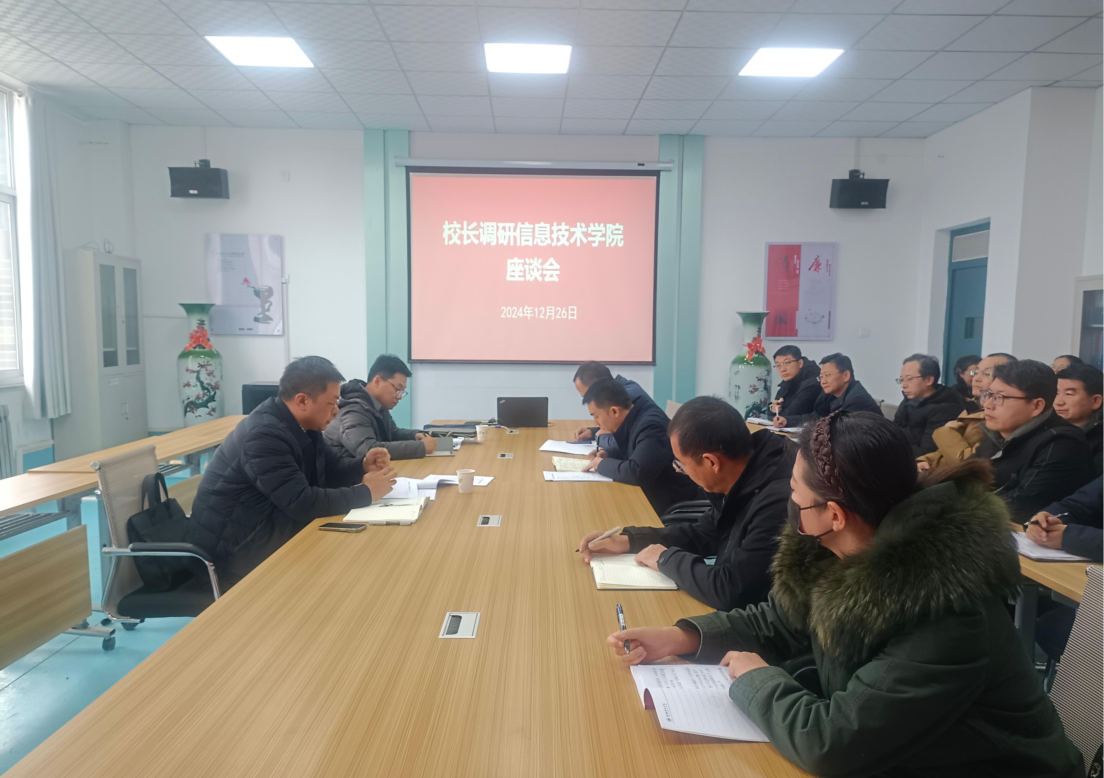 12月26日,校長李海軍深入信息技術(shù)學(xué)院,通過實(shí)地走訪、座談交流等形式開展調(diào)研,辦公室主任董鵬陪同調(diào)研。信息技術(shù)學(xué)院負(fù)責(zé)人和教師代表參加了調(diào)研活動(dòng)。