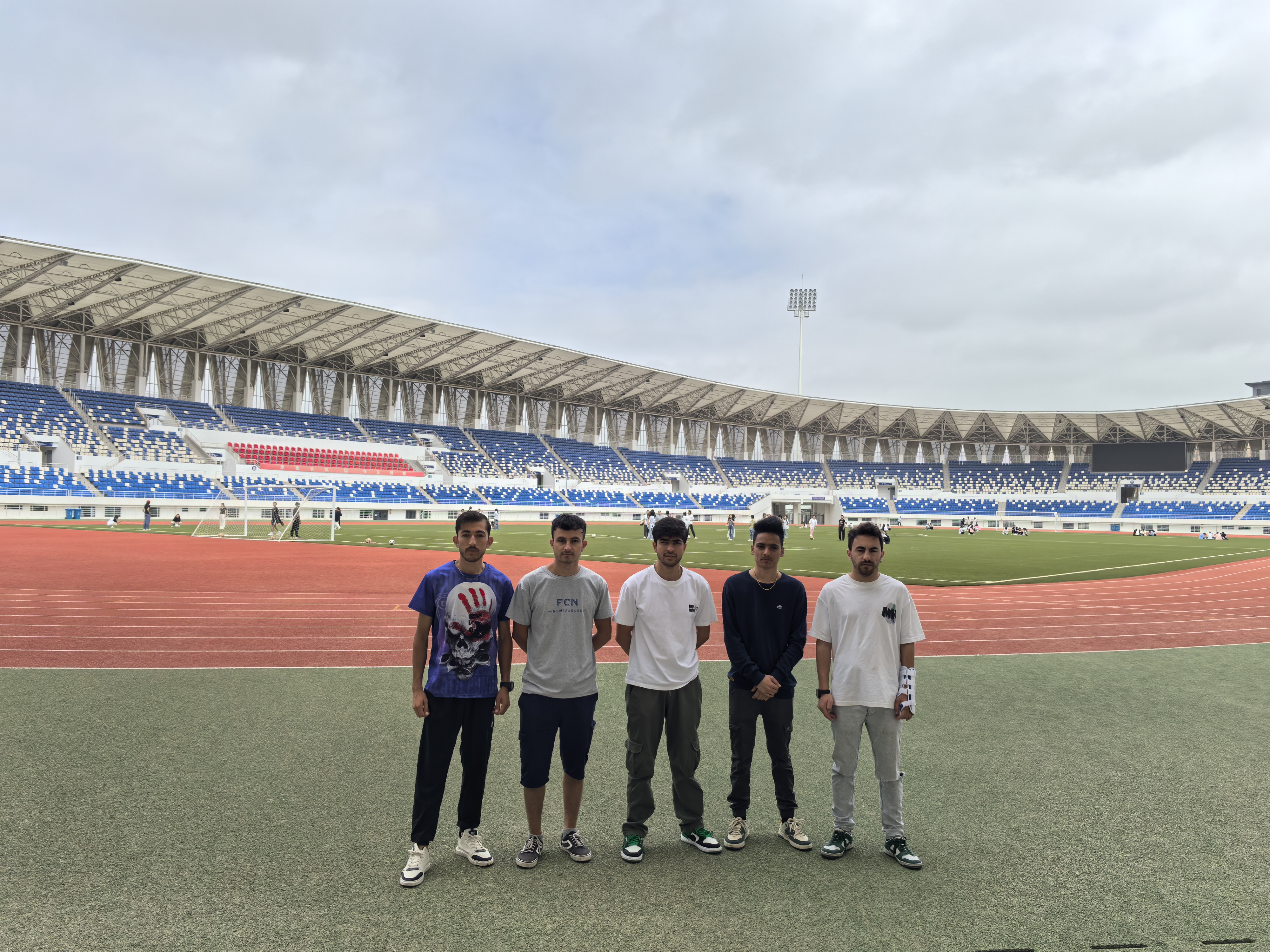 新招收留學(xué)生在體育場(chǎng)合影留念