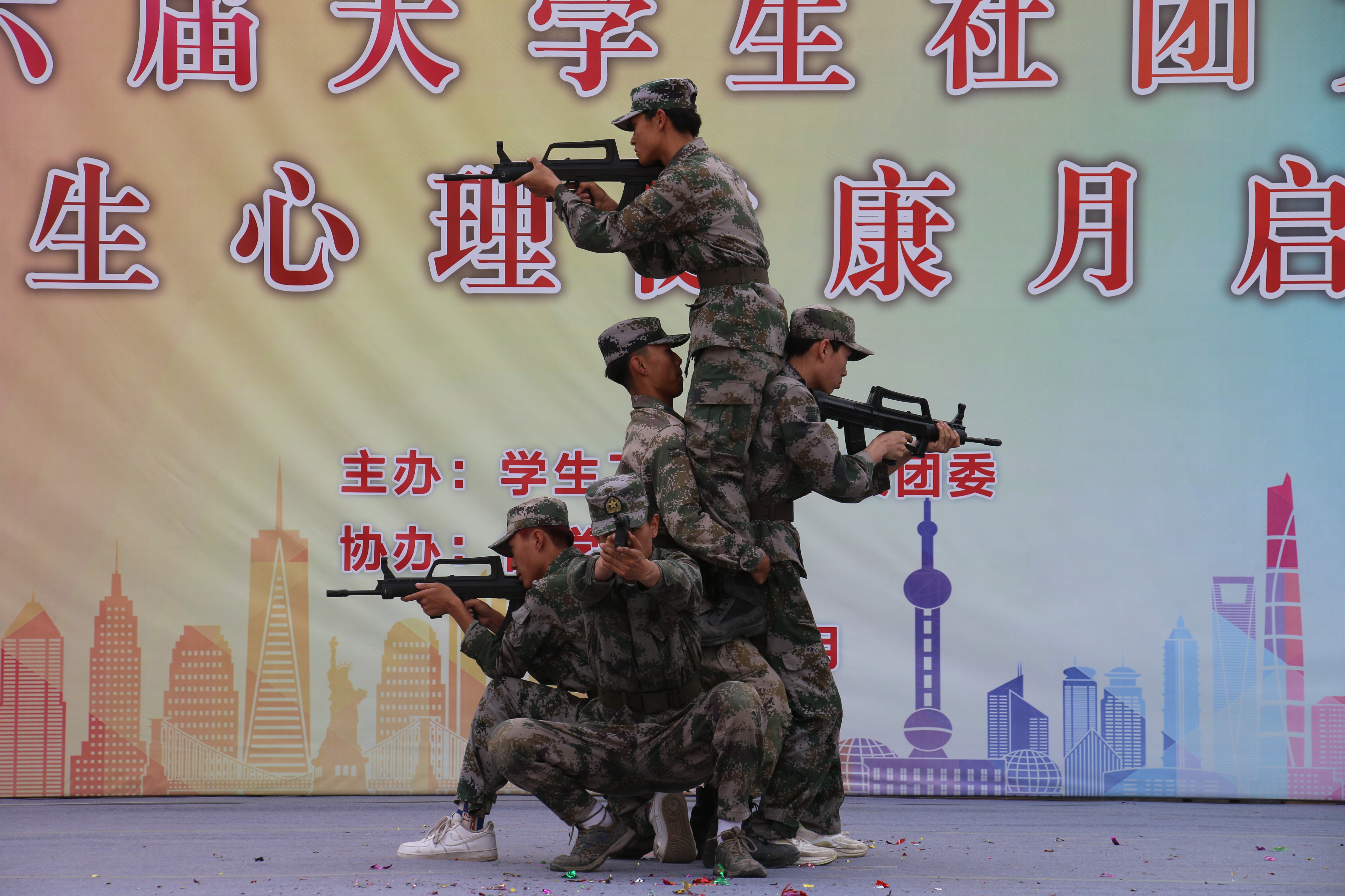 學(xué)校校長、黨委副書記張開禮對社團(tuán)文化節(jié)的開幕表示祝賀并致開幕詞。他指出,學(xué)校社團(tuán)是武職青年學(xué)子發(fā)揚(yáng)興趣特長,陶冶興趣情操,拓展能力,創(chuàng)新創(chuàng)造的核心平臺。希望各學(xué)生社團(tuán)進(jìn)一步加強(qiáng)建設(shè),并對今后學(xué)生社團(tuán)發(fā)展提出三點(diǎn)要求:一是堅(jiān)定理想信念,做好社團(tuán)文化的建設(shè)者。學(xué)生社團(tuán)要堅(jiān)持以正能量、新思想、新形式統(tǒng)領(lǐng)社團(tuán)文化建設(shè),建立文化自信。二是勇于擔(dān)當(dāng)使命,做好凝聚青年的組織者。社團(tuán)活動必須堅(jiān)持以服務(wù)廣大同學(xué)為根本原則,開展方向正確、健康向上、形式多樣的社團(tuán)活動。三是堅(jiān)持守正創(chuàng)新,做好創(chuàng)新實(shí)踐的探索者。社團(tuán)活動要以創(chuàng)新、實(shí)踐為著力點(diǎn),搭建培養(yǎng)創(chuàng)新社團(tuán)平臺,培育一批叫得響、反響好的創(chuàng)新實(shí)踐項(xiàng)目。