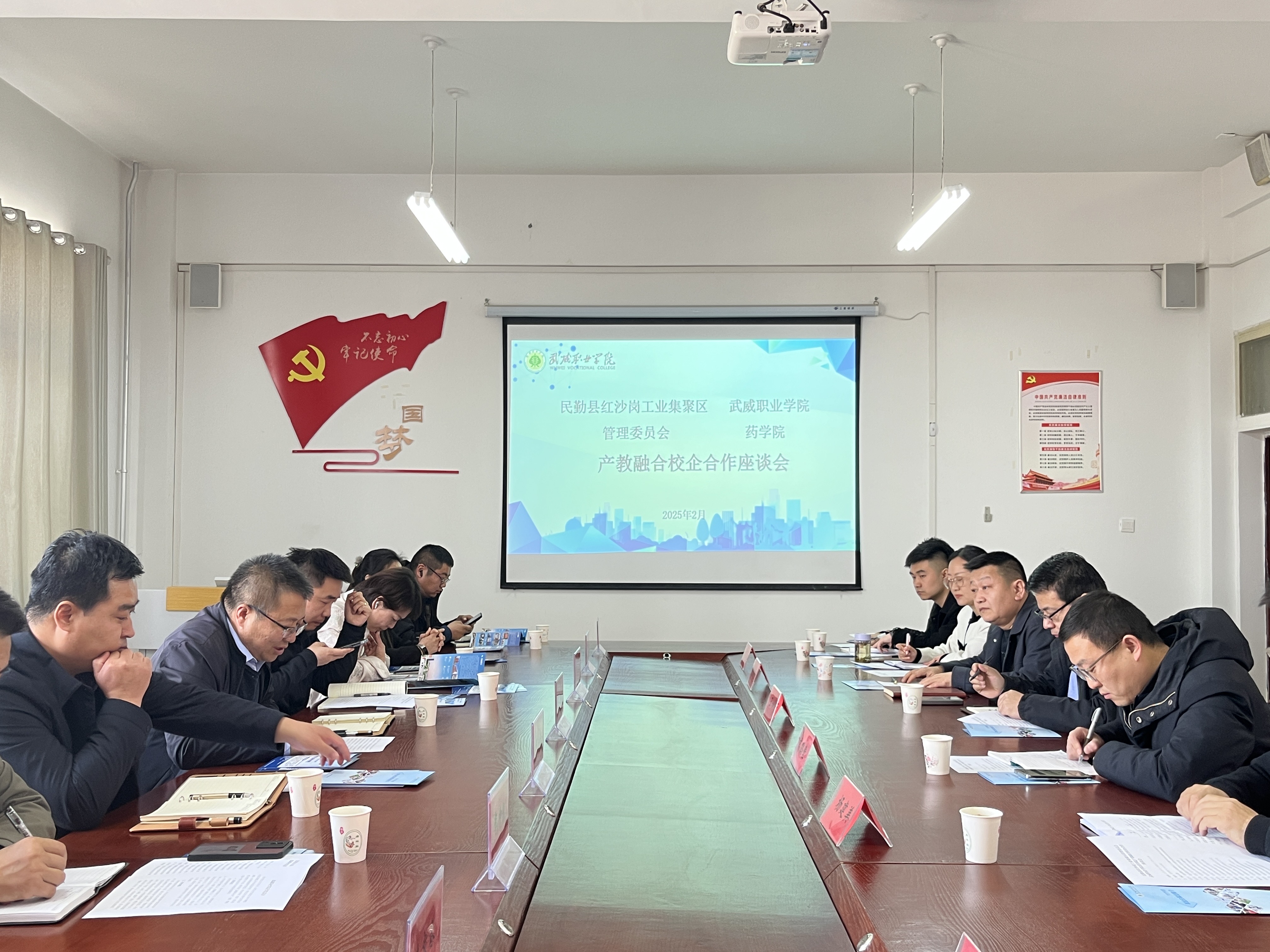 為進(jìn)一步深化校企合作、拓寬學(xué)生就業(yè)渠道、促進(jìn)藥學(xué)專業(yè)人才培養(yǎng)與產(chǎn)業(yè)需求深度融合,2月28日下午,藥學(xué)院在尚德樓411會議室舉辦了產(chǎn)教融合校企合作座談會。武威民勤紅沙崗工業(yè)集聚區(qū)管理委員會黨工委委員、辦公室主任楊宏大,管委會項目發(fā)展部部長李兆清,學(xué)校招生就業(yè)處處長高鵬堂、工程技術(shù)學(xué)院黨總支書記王鐸云、繼續(xù)教育學(xué)院黨總支書記楊建美、藥學(xué)院副院長馬琪、學(xué)生工作負(fù)責(zé)人魏曙光、部分二級學(xué)院就業(yè)專干和規(guī)上企業(yè)代表參加會議。