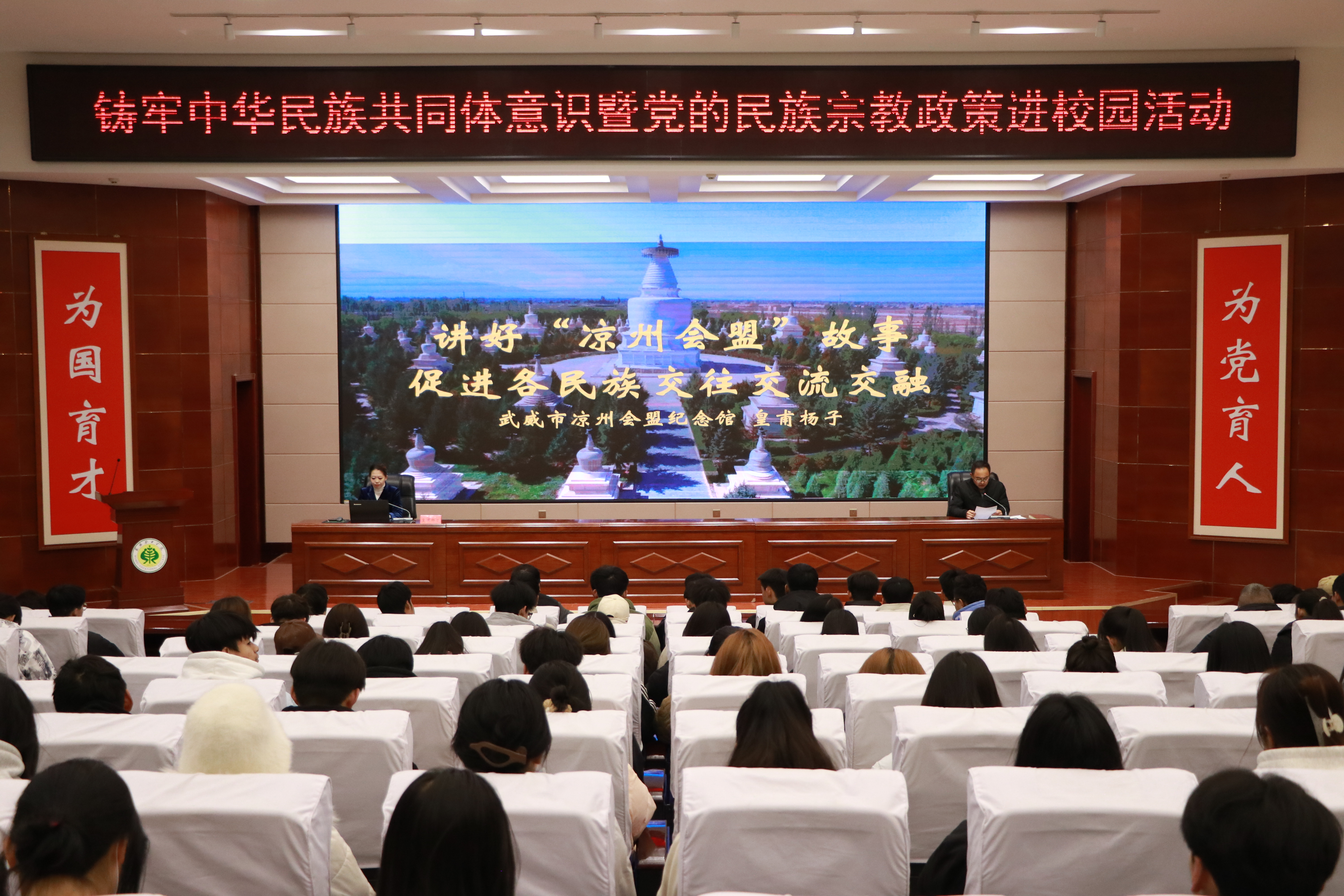 12月19日,學(xué)校聯(lián)合武威市涼州會盟紀(jì)念館,成功舉辦了鑄牢中華民族共同體意識暨民族宗教政策進(jìn)校園系列活動?;顒庸参?00余名師生參觀聽講。