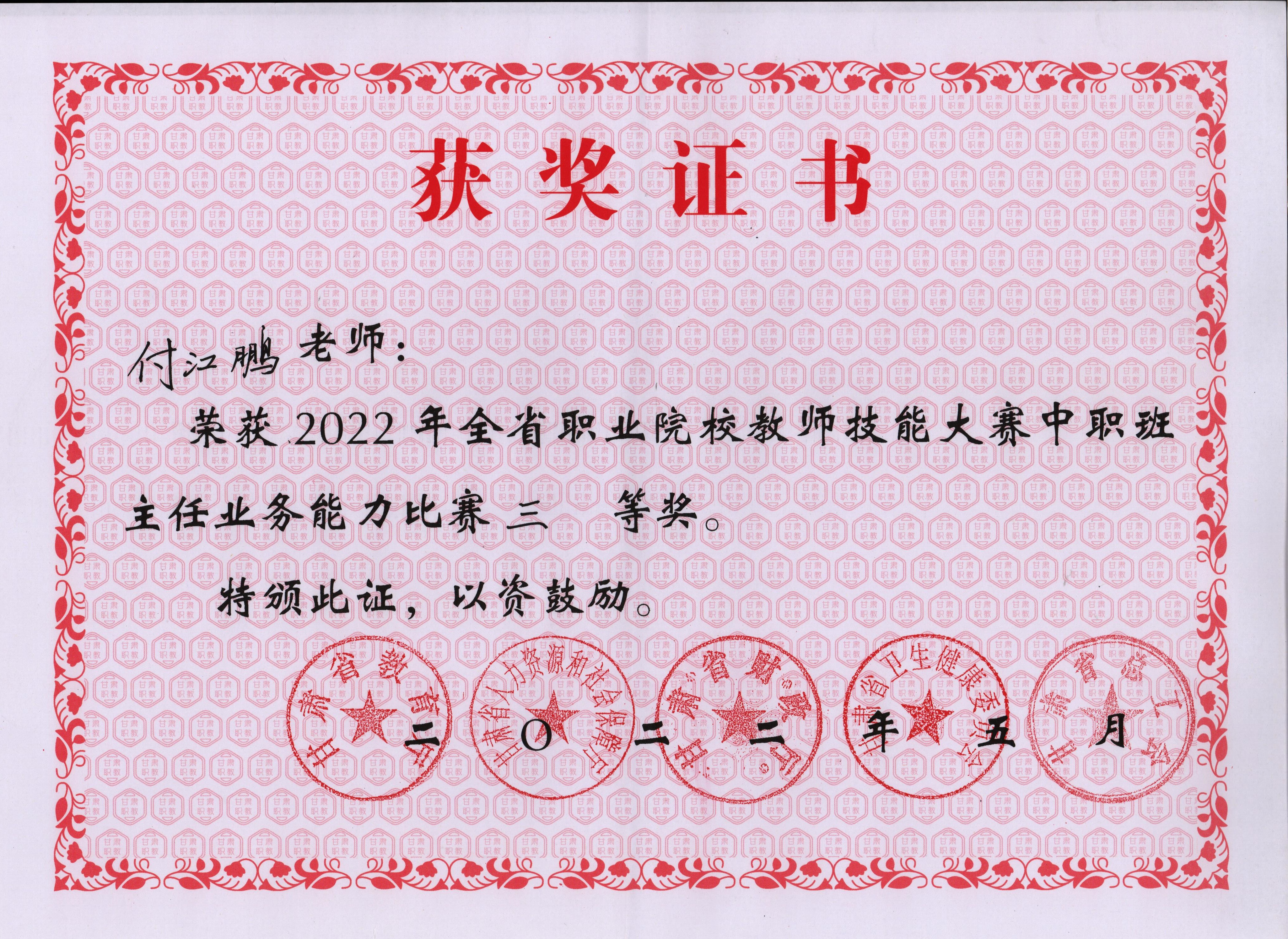 付江鵬 | 2023年甘肅省職業(yè)院校技能大賽班主任能力比賽 | 省級 | 三等 |