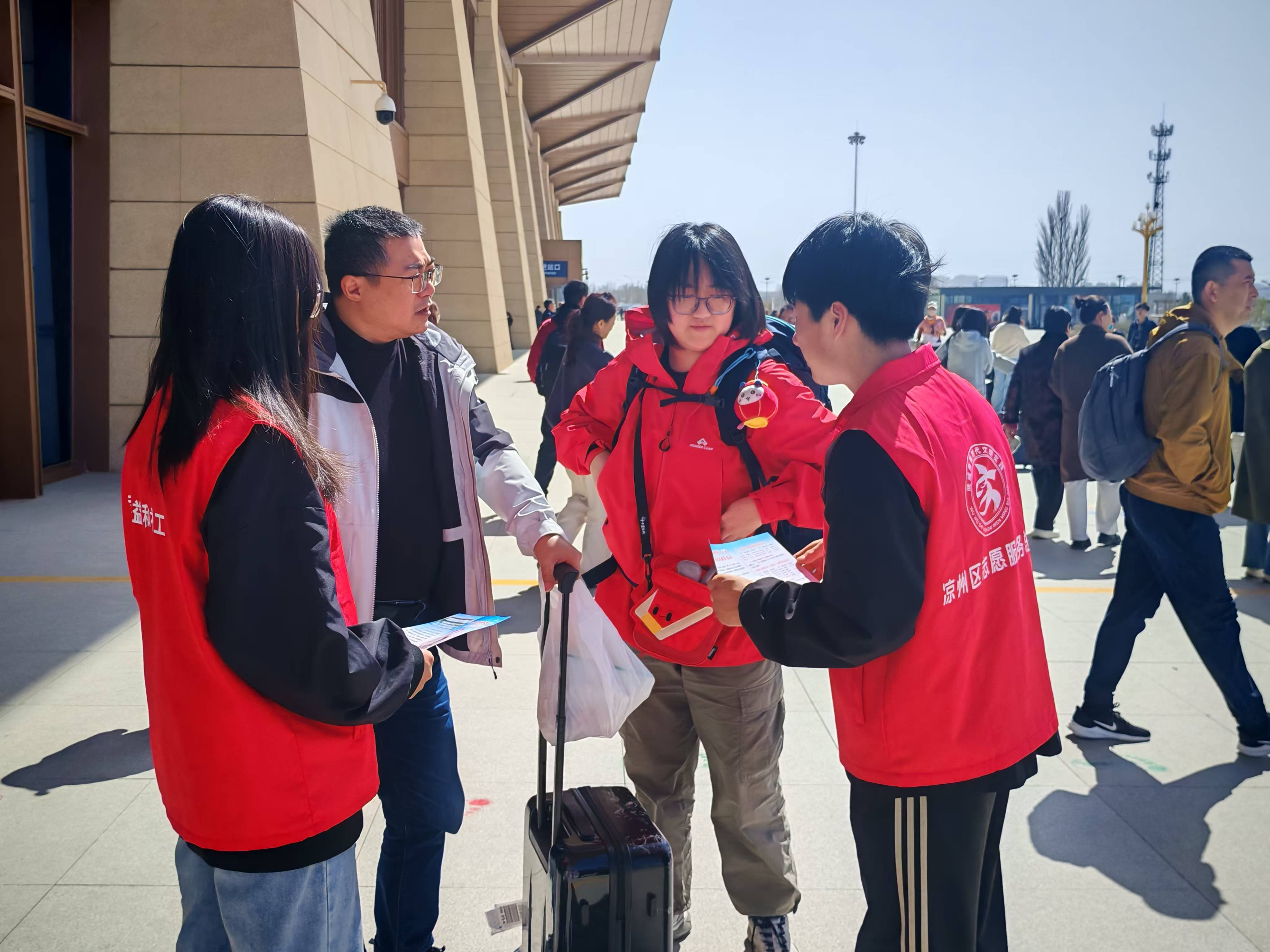 近期,學(xué)校積極響應(yīng)“請到民勤種棵樹”活動(dòng),組織學(xué)校青年志愿者在武威高鐵站、火車站、客運(yùn)中心設(shè)立志愿服務(wù)站,為來自全國各地的植樹志愿者提供全方位服務(wù),以實(shí)際行動(dòng)踐行志愿精神,為助力民勤生態(tài)治理貢獻(xiàn)青春力量。