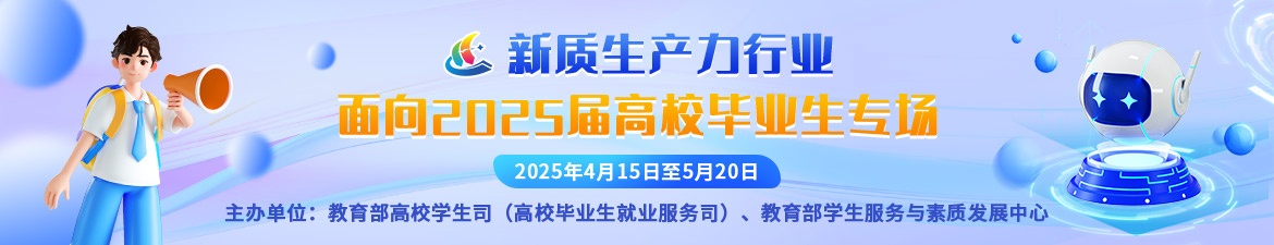 為整合新質生產(chǎn)力行業(yè)的崗位資源,優(yōu)化行業(yè)人才供需對接,搭建產(chǎn)業(yè)和人才培養(yǎng)交流的溝通平臺,特開展“新質生產(chǎn)力行業(yè)面向2025屆高校畢業(yè)生專場”。