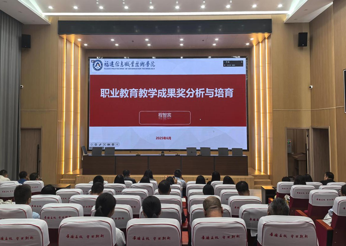 為系統(tǒng)提升職業(yè)教育教學(xué)成果培育質(zhì)量,6月8日,學(xué)校特邀福建信息職業(yè)技術(shù)學(xué)院教務(wù)處處長程智賓教授在能源科技樓學(xué)術(shù)報告廳作了“職業(yè)教育教學(xué)成果獎分析與培育”專題講座,學(xué)校重點培育項目的負(fù)責(zé)人及團(tuán)隊成員聆聽了講座。