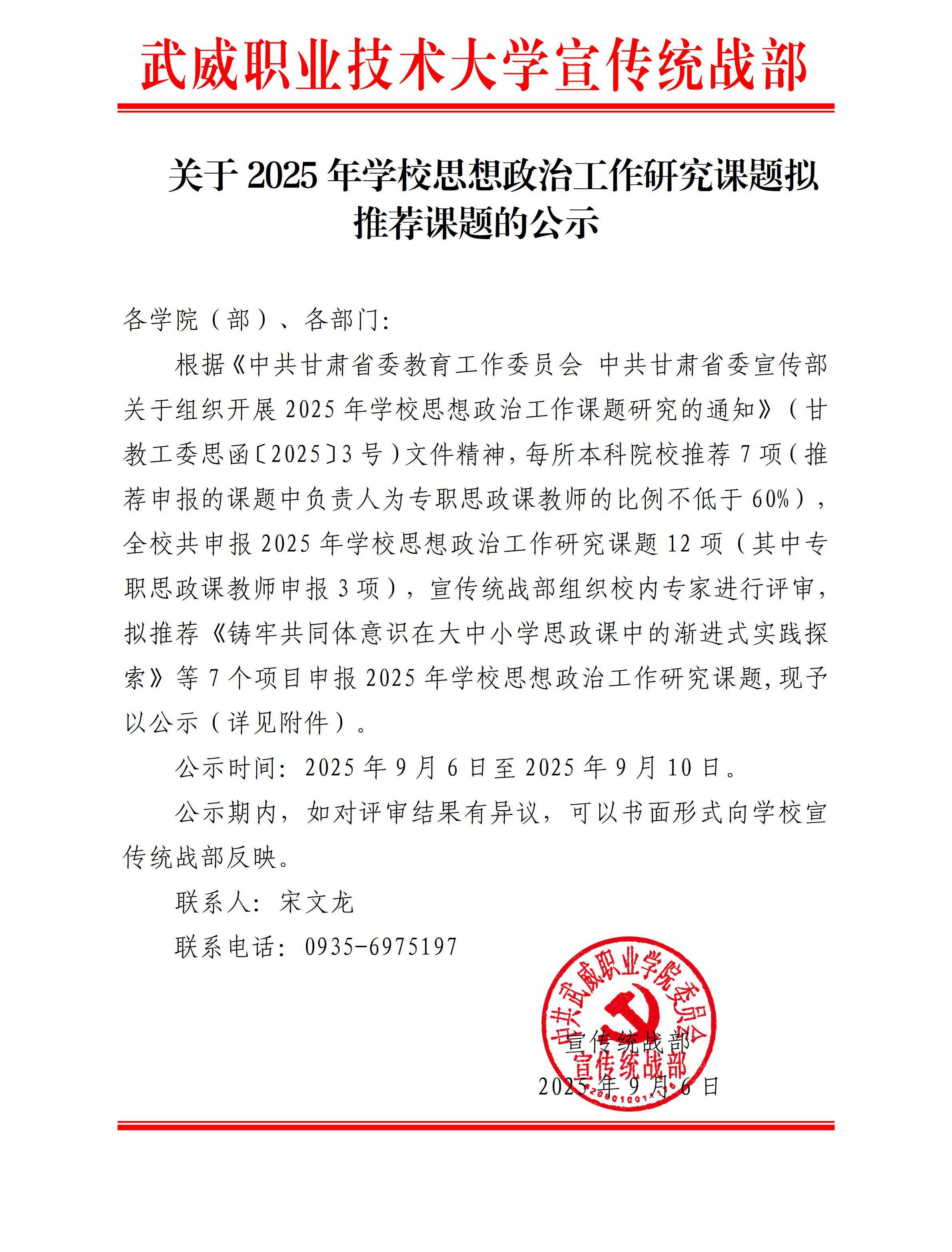 關(guān)于2025年學(xué)校思想政治工作研究課題擬推薦課題的公示
