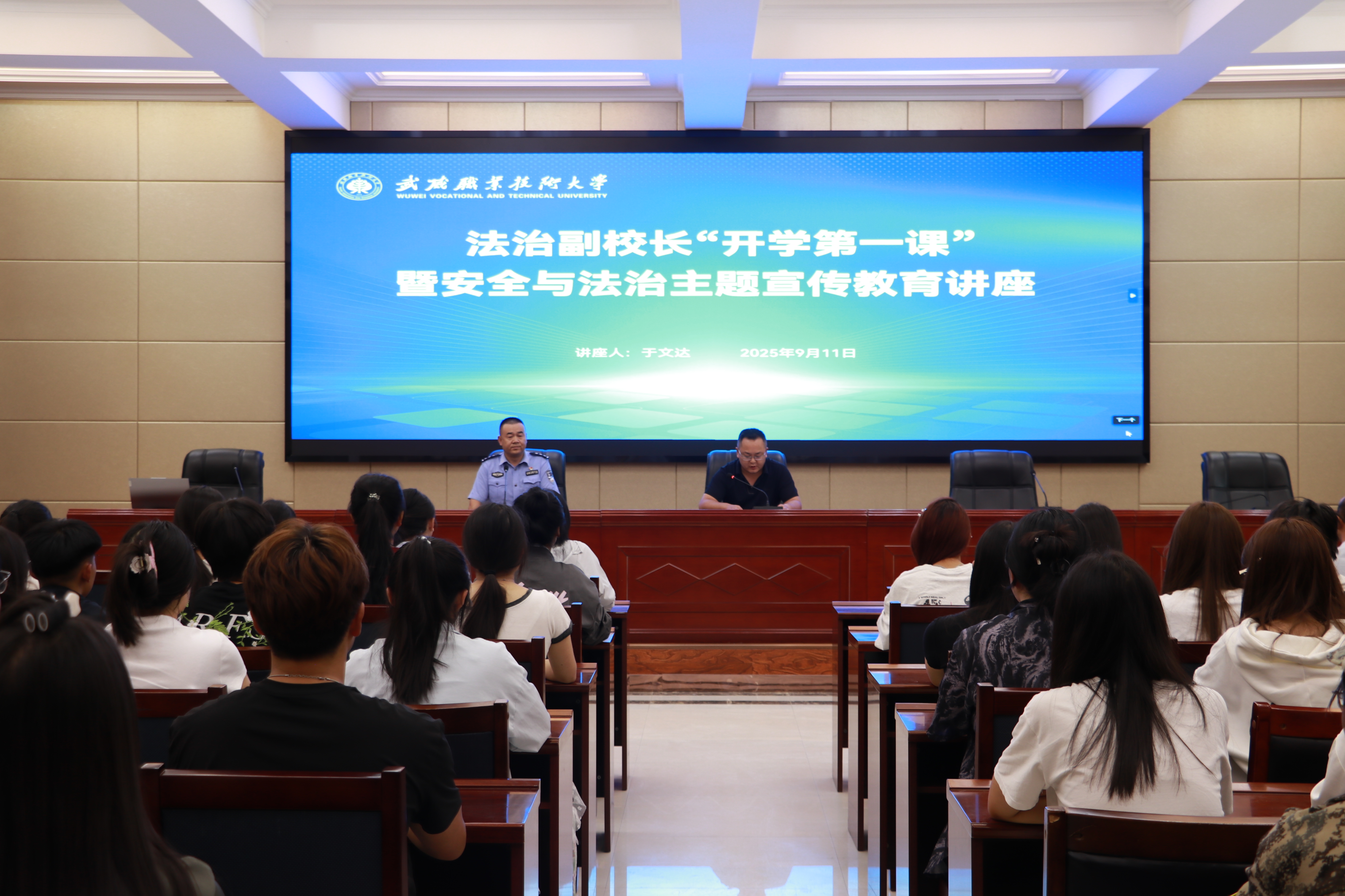 為加強(qiáng)師生法治觀念,提高安全意識(shí),9月11日,學(xué)校安全保衛(wèi)處邀請(qǐng)法治副校長(zhǎng)于文達(dá)為學(xué)校師生講授2025年秋季學(xué)期“開學(xué)第一課”,開展安全與法治教育專題講座。活動(dòng)在行樹樓北側(cè)報(bào)告廳舉行,活動(dòng)由安全保衛(wèi)處副處長(zhǎng)康興奎主持。
