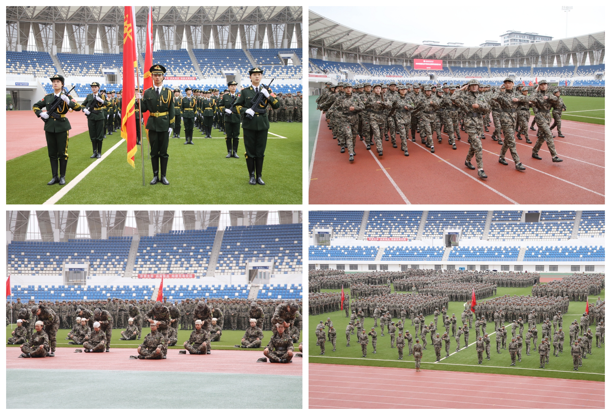 軍訓(xùn)總結(jié)匯報(bào)環(huán)節(jié),2025級新生進(jìn)行了精彩的分列式方隊(duì)行進(jìn)、匕首操、槍械換位、軍體拳、戰(zhàn)場救護(hù)技能展示等表演。軍訓(xùn)場上,同學(xué)們眼神堅(jiān)毅、氣勢如虹,彰顯了武職大學(xué)子傳承紅色基因、賡續(xù)紅色血脈,拼搏向前、敢于爭先的良好精神風(fēng)貌。
