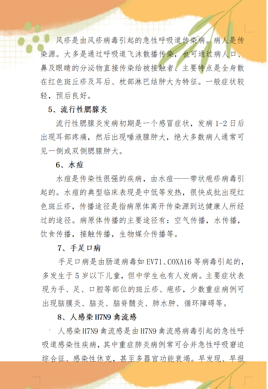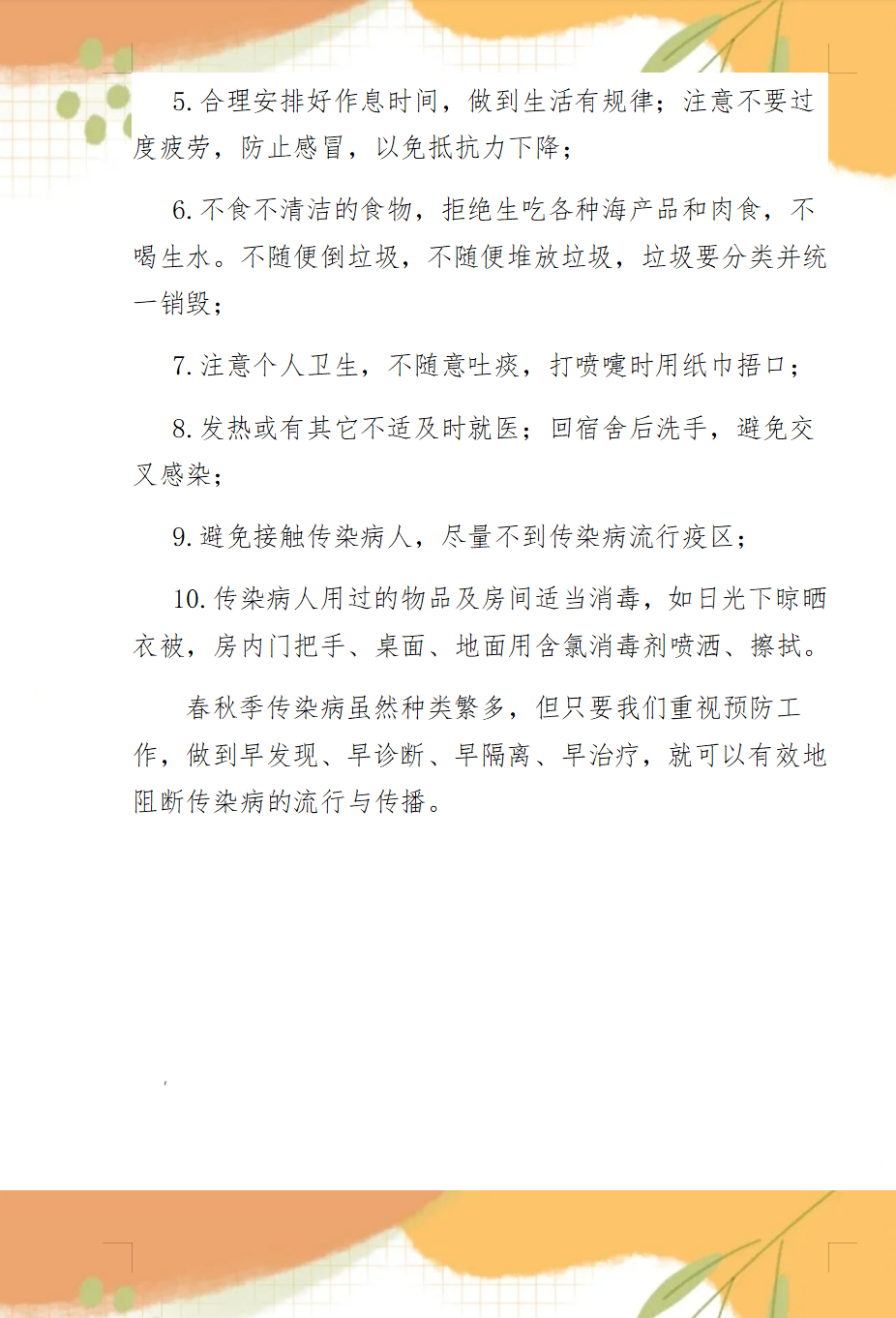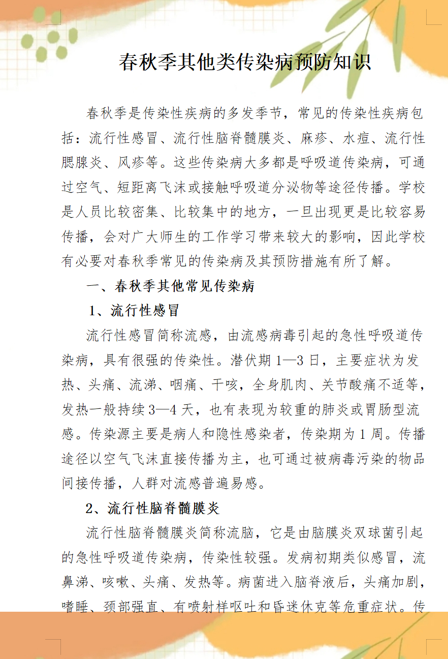 春秋季其他類傳染病預(yù)防知識