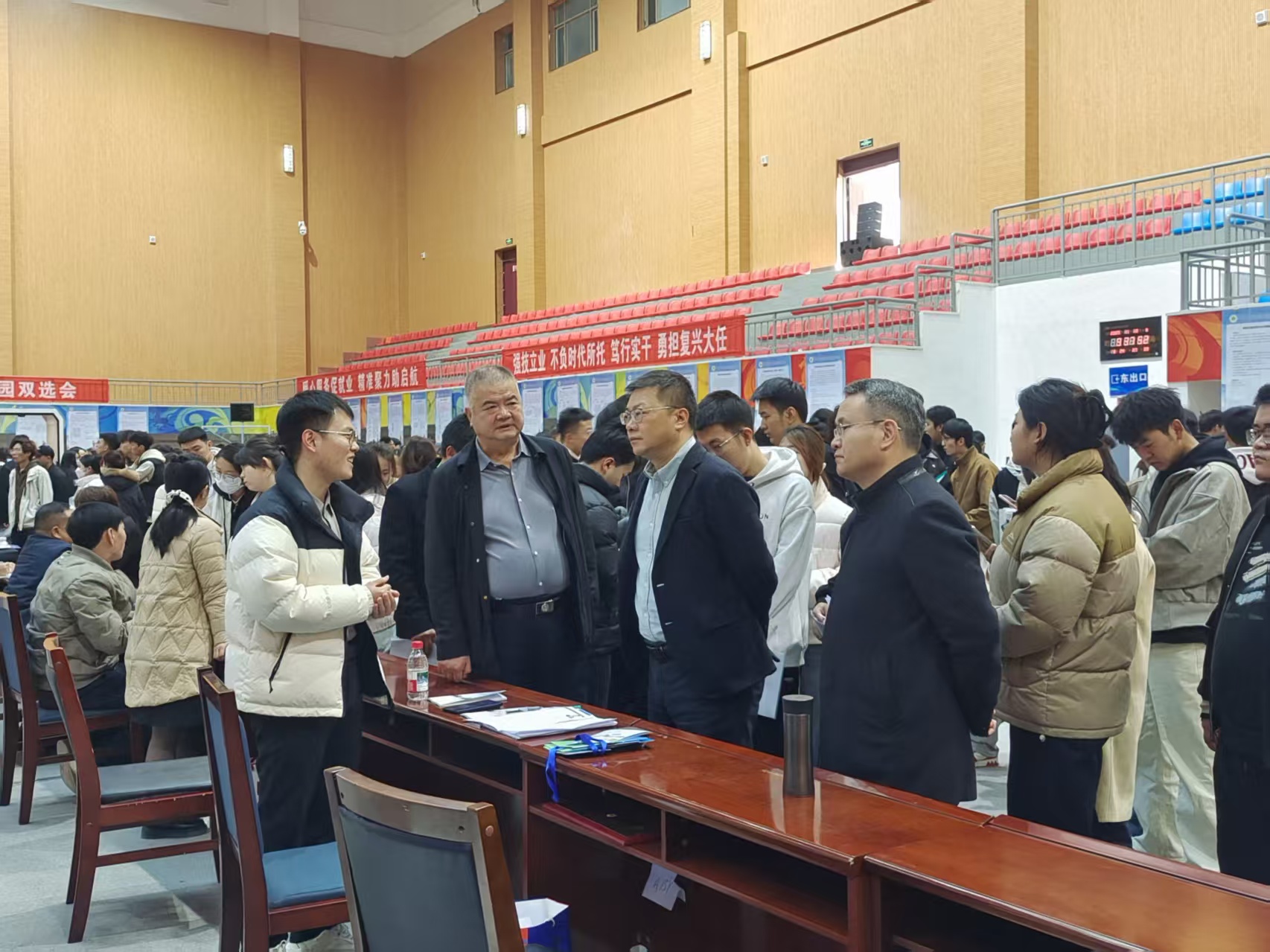 11月13日,校園招聘雙選會在學校體育館隆重舉行。校長李海軍、副校長王守云、伍國強親臨現(xiàn)場指導工作。李海軍詳細了解本屆畢業(yè)生的招聘需求與市場動向,走訪多家用人單位展位并聽取企業(yè)對學校人才培養(yǎng)的寶貴意見。同時,與應聘學生進行親切交流,勉勵畢業(yè)生們要樹立正確的擇業(yè)觀,立足本職,服務社會,將個人成長融入國家發(fā)展大局。