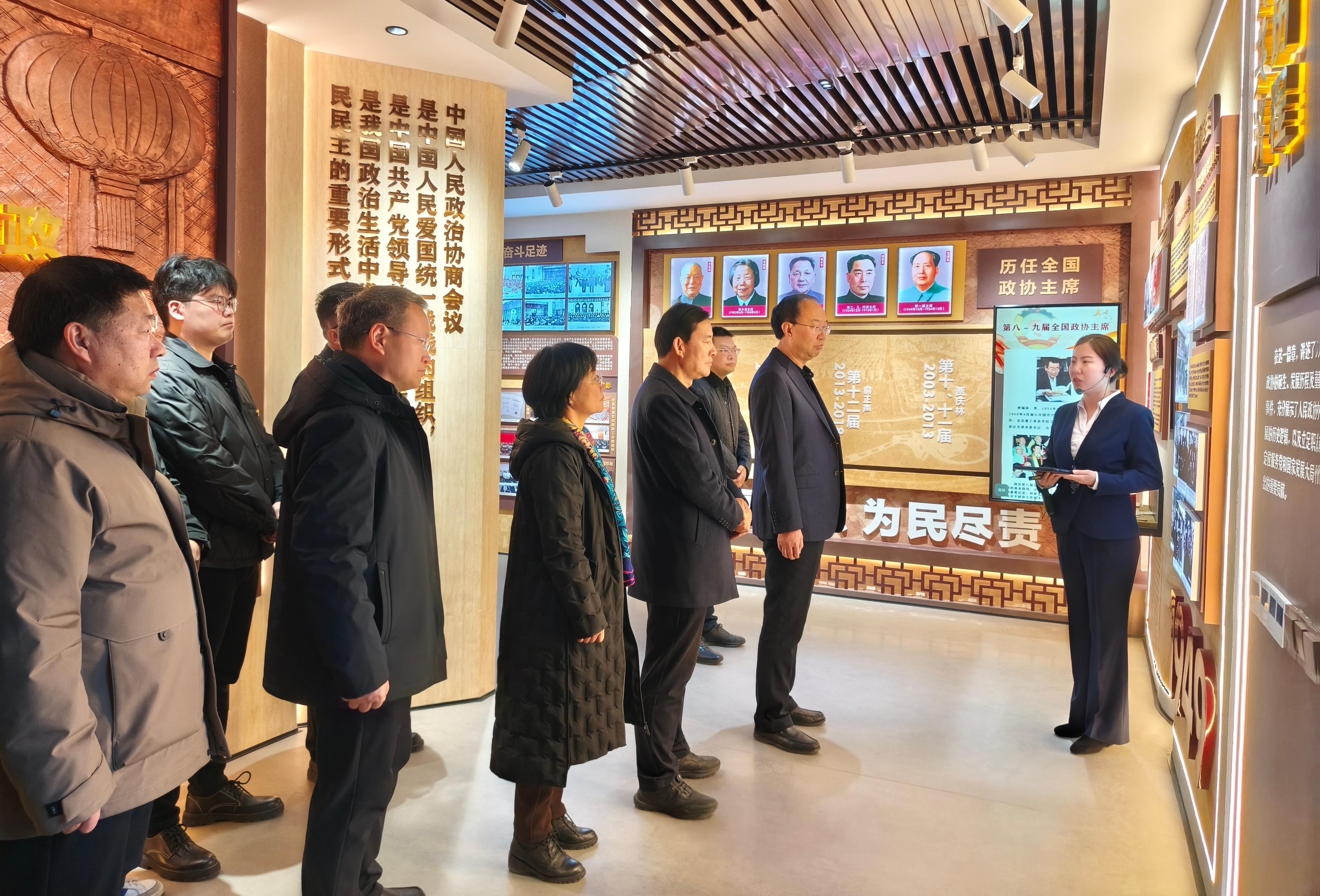 在講解員的引導(dǎo)下,大家依次參觀了政協(xié)發(fā)展成就展示廳、文史資料室等主要展區(qū),通過觀看珍貴的歷史文獻(xiàn)、詳實的檔案資料和生動的圖片影像,系統(tǒng)回顧了人民政協(xié)在中國共產(chǎn)黨領(lǐng)導(dǎo)下走過的光輝歷程和積累的寶貴經(jīng)驗,深入了解了武威市政協(xié)在推進(jìn)政治協(xié)商、民主監(jiān)督、參政議政等方面的具體實踐與積極成效。參觀過程中,校領(lǐng)導(dǎo)還與市政協(xié)相關(guān)負(fù)責(zé)同志就文史館的規(guī)劃建設(shè)、展陳設(shè)計等工作進(jìn)行了深入交流。