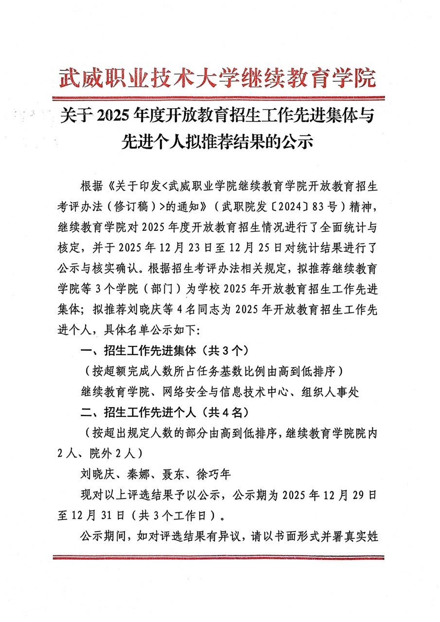 關(guān)于2025年度開放教育招生工作先進(jìn)集體與先進(jìn)個(gè)人擬推薦結(jié)果的公示