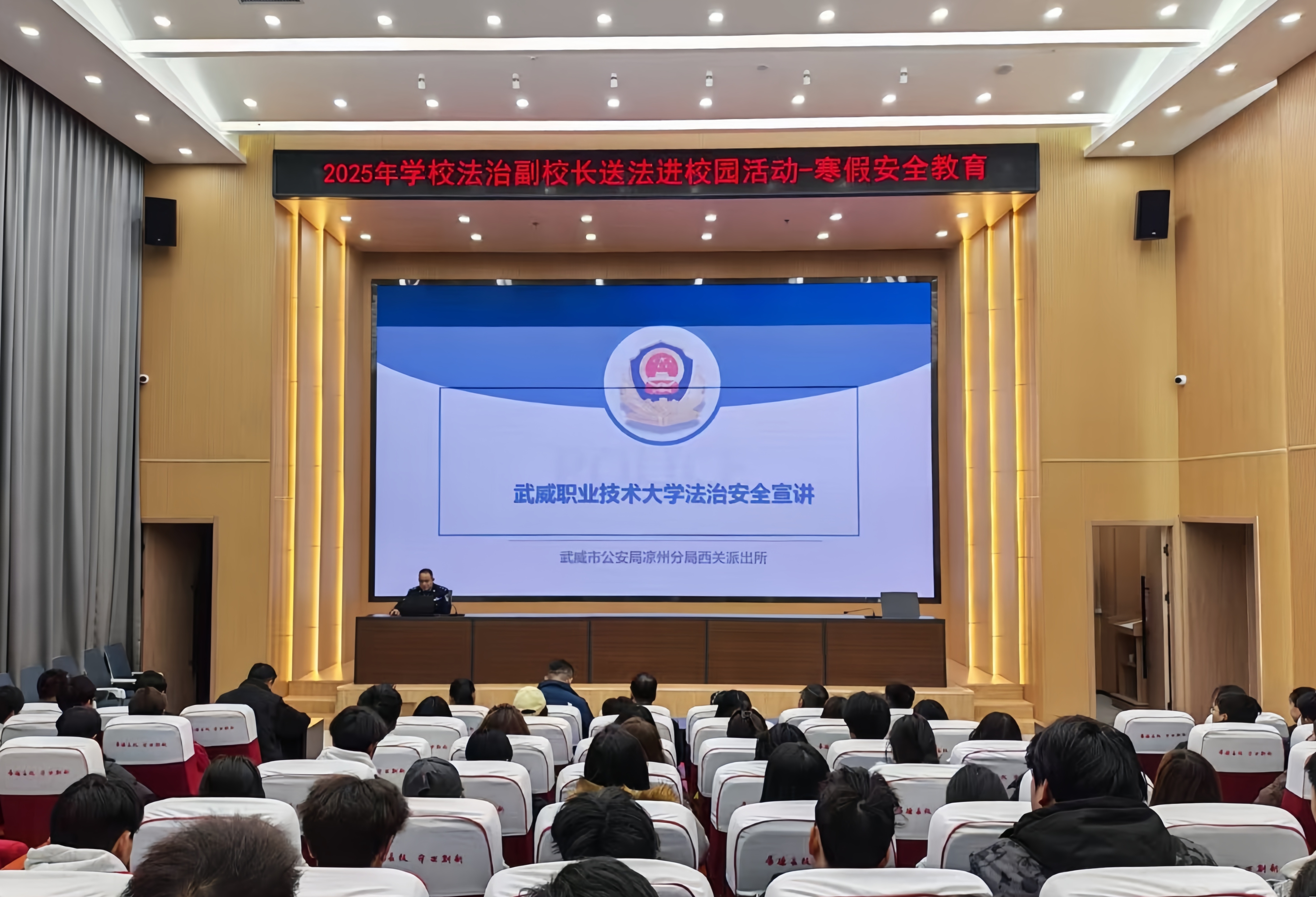 為切實增強師生法治觀念與安全防范意識,筑牢校園安全防線,12月30日,學校法治副校長送法進校園專題宣講活動在能源科技樓一樓學術(shù)報告廳舉行,各學院輔導員及學生代表共計110余人參加活動。