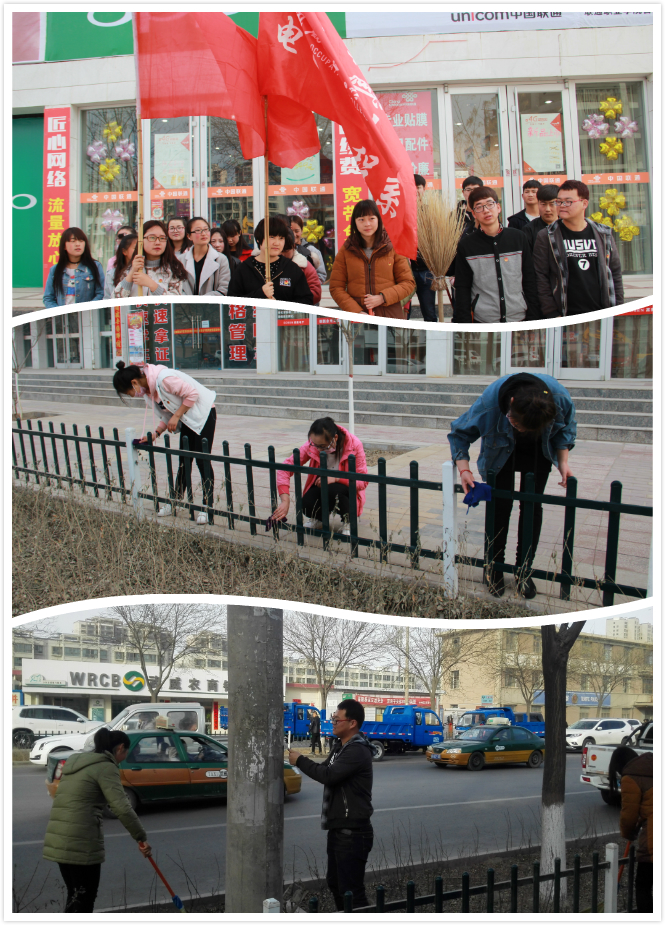 電子信息工程系團(tuán)總支結(jié)合團(tuán)市委、院團(tuán)委《關(guān)于開展城鄉(xiāng)環(huán)境衛(wèi)生整治青年志愿服務(wù)活動的通知》安排,3月3日下午16:30組織20名團(tuán)員青年在學(xué)院北門口道路兩側(cè)開展了衛(wèi)生死角清掃,柵欄清潔,果皮箱清潔,公交站臺清潔,小廣告清理,垃圾清運(yùn)。學(xué)生志愿者盡己所能,服務(wù)社會,傳播勞動信念,為建設(shè)美好社會貢獻(xiàn)自己的一份微薄力量。