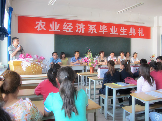 農(nóng)業(yè)經(jīng)濟(jì)系第二屆團(tuán)學(xué)會主席,12級設(shè)施農(nóng)業(yè)技術(shù)大專1班學(xué)生吳光宗代表全體畢業(yè)生,發(fā)表了畢業(yè)感言,表達(dá)了對系部的眷戀、老師的感激和對未來的信心。農(nóng)業(yè)經(jīng)濟(jì)系第三屆團(tuán)學(xué)會主席、13級綠色食品生產(chǎn)與檢測大專班學(xué)生趙三桃代表全體在校生向優(yōu)秀畢業(yè)生學(xué)習(xí),積極學(xué)習(xí),珍惜美好青春,努力成為一名對社會有貢獻(xiàn)的人。系領(lǐng)導(dǎo)向設(shè)施農(nóng)業(yè)技術(shù)專業(yè)81名學(xué)子頒發(fā)了畢業(yè)證書。畢業(yè)生代表向系部送上了鮮花、紀(jì)念品。畢業(yè)典禮在齊唱《畢業(yè)歌》中結(jié)束。