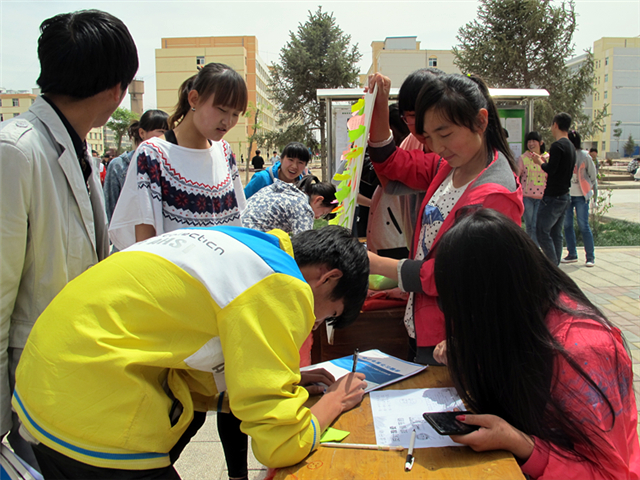 我系青年志愿者在校園設(shè)立了固定宣傳位,設(shè)計(jì)制作了展板,開展了“讓我們一起光盤吧”簽字征集活動,并在食堂餐桌上張貼光盤行動的小便簽,與前來就餐的同學(xué)互動。此外,志愿者還利用網(wǎng)絡(luò)社交平臺、微博、微信等新媒體進(jìn)行宣傳,深化了青年志愿者精神、踐行了文明新風(fēng)、收到了良好的效果,。