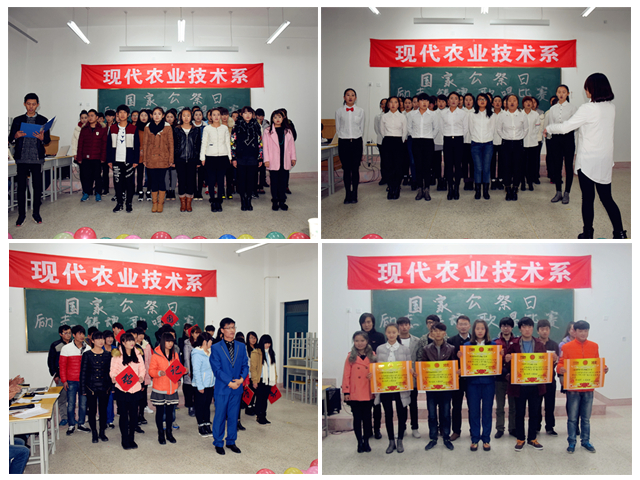 為紀(jì)念抗戰(zhàn)勝利70周年,現(xiàn)代農(nóng)業(yè)技術(shù)系團(tuán)總支積極響應(yīng)院團(tuán)委號(hào)召于2015年12月13日在行樹樓504舉辦以“牢記歷史,勿忘國恥”為主題的鑄魂勵(lì)志合唱比賽,系學(xué)生工作負(fù)責(zé)人蔡飛、部分青年教師及其他系部團(tuán)學(xué)會(huì)主席應(yīng)邀擔(dān)任本次比賽評(píng)委。