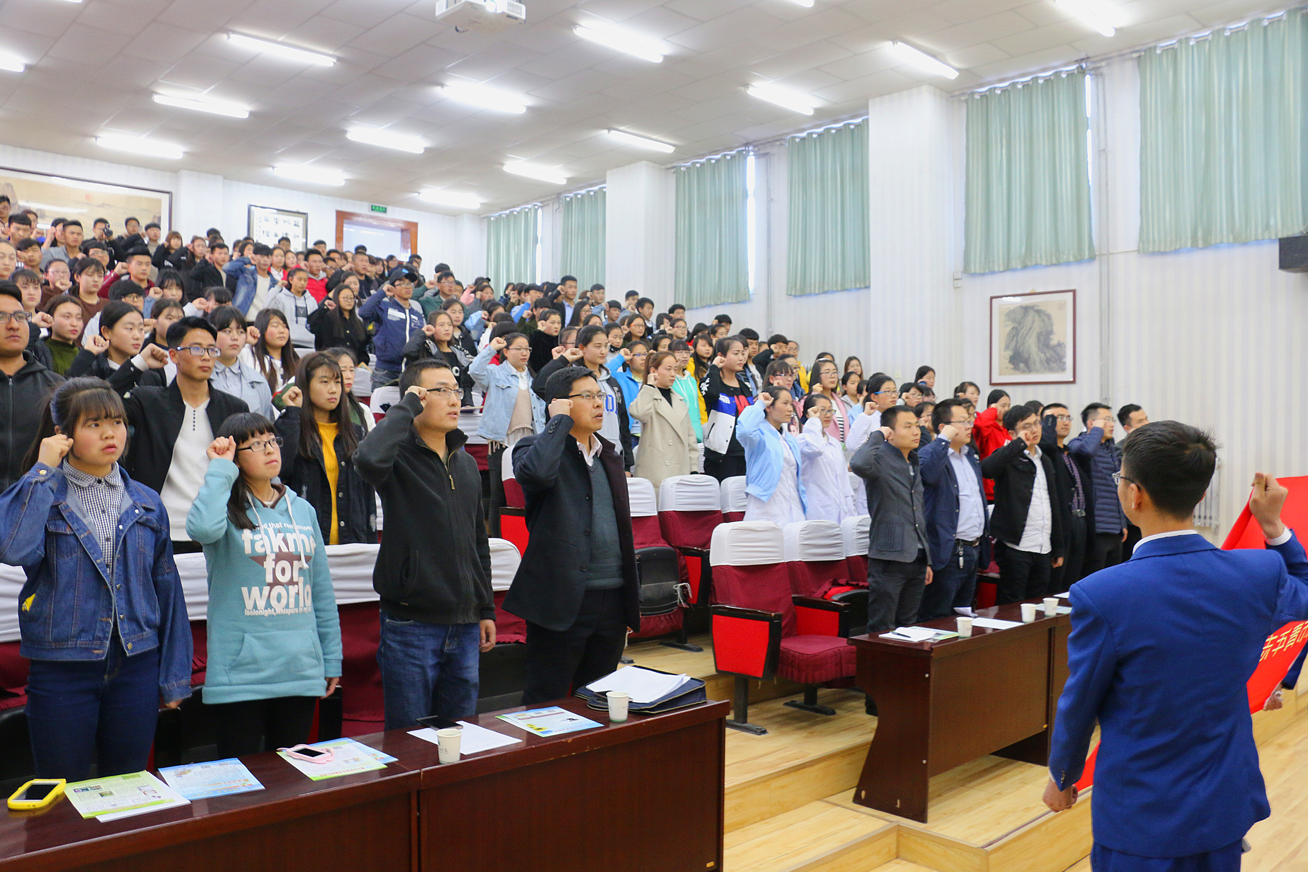活動(dòng)期間,參會(huì)人員觀看了禁毒宣傳微電影《青春的癮子》,學(xué)生代表上臺(tái)宣讀了《禁毒倡議書(shū)》,倡議全校師生積極行動(dòng)起來(lái),從自身做,珍愛(ài)生命,遠(yuǎn)離毒品,積極投身禁毒行動(dòng)。最后,參加活動(dòng)的全體師生起立莊嚴(yán)宣誓加入青年志愿者隊(duì)伍,承諾踐行志愿精神,傳播先進(jìn)文化,參與禁毒宣傳斗爭(zhēng),引導(dǎo)更多同學(xué)參與到禁毒的活動(dòng)中,為建設(shè)“無(wú)毒校園”、構(gòu)建和諧社會(huì)發(fā)揮應(yīng)有的作用。