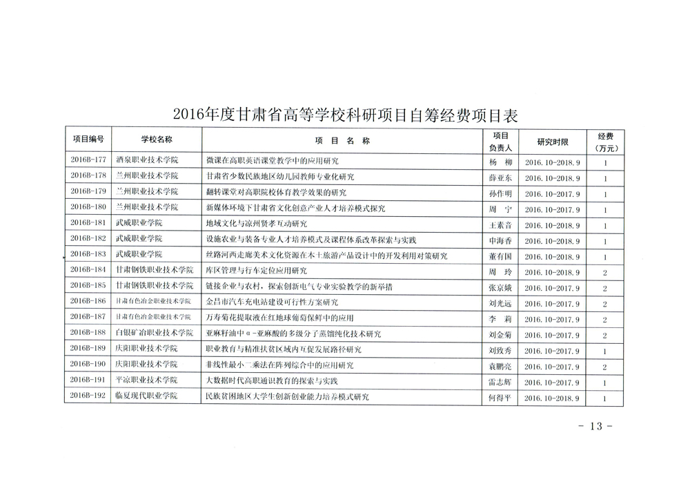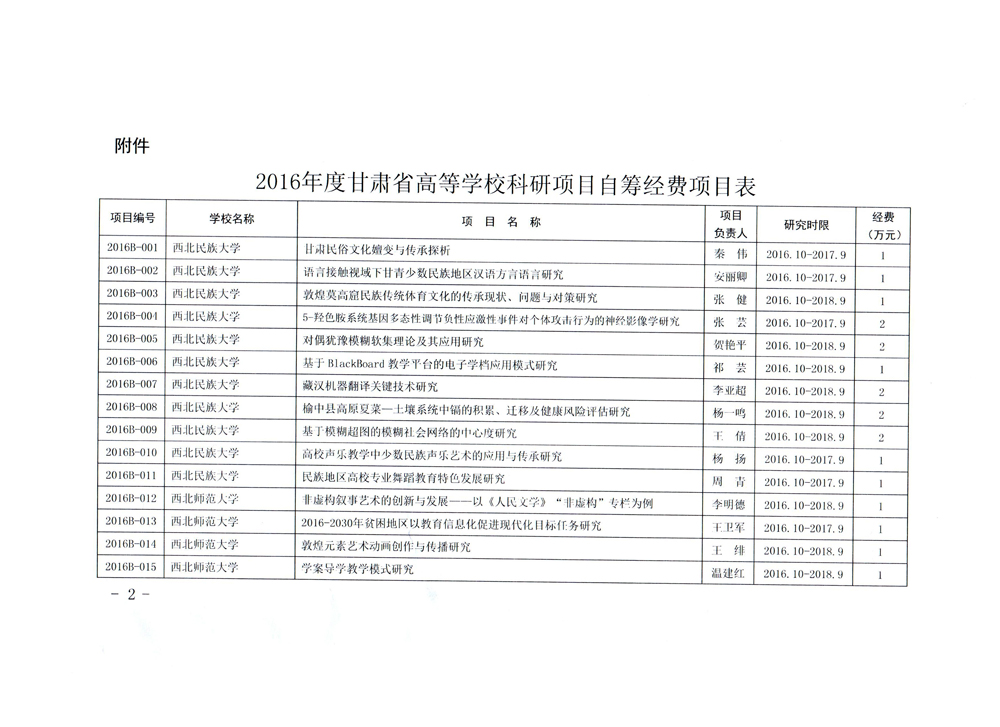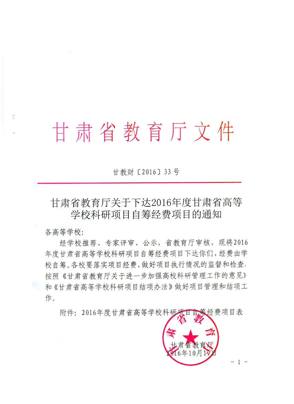 轉(zhuǎn)發(fā)甘肅省財政廳 教育廳文件 關于下達2016年度甘肅省高等學??蒲许椖孔曰I經(jīng)費項目的通知