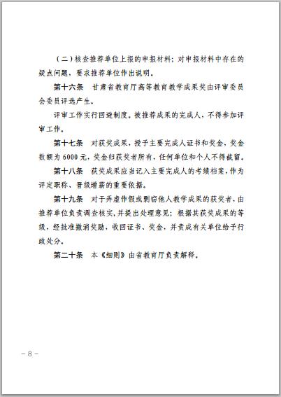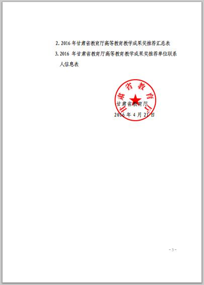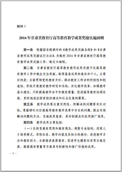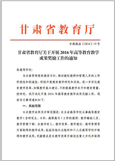 甘肅省教育廳關(guān)于開(kāi)展2016年高等教育教學(xué)成果獎(jiǎng)勵(lì)工作的通知