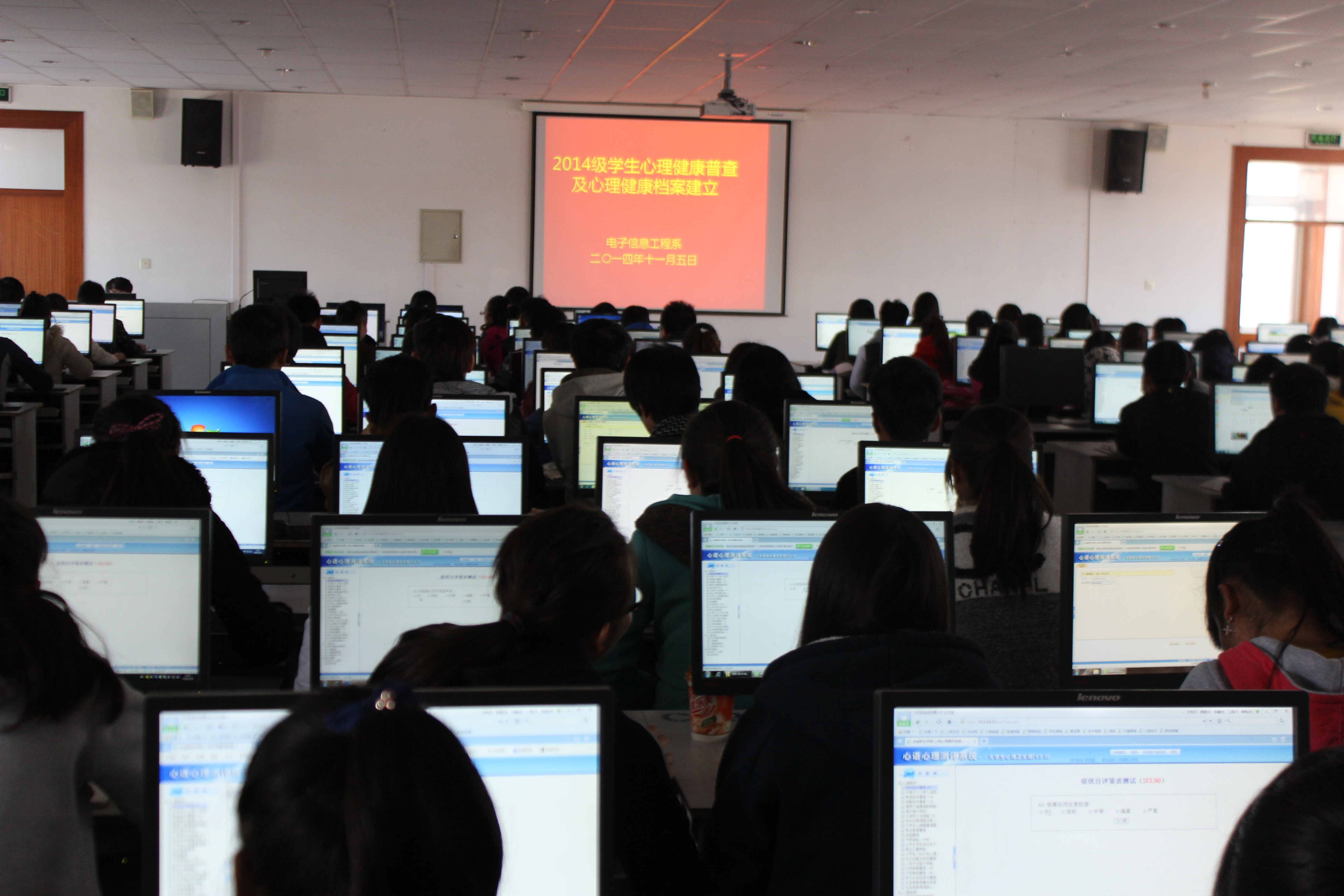 為及時掌握2014級學(xué)生的心理健康狀況,有針對性地進(jìn)行心理健康教育,按照學(xué)院心理健康普查安排及要求,11月5日12時10分,我系組織2014級學(xué)生完成了心理健康狀況普測工作,并為每個同學(xué)建立了心理健康檔案。