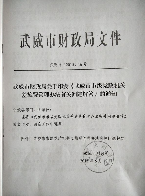 <轉(zhuǎn)發(fā)>武威市市級(jí)黨政機(jī)關(guān)差旅費(fèi)管理辦法有關(guān)問(wèn)…