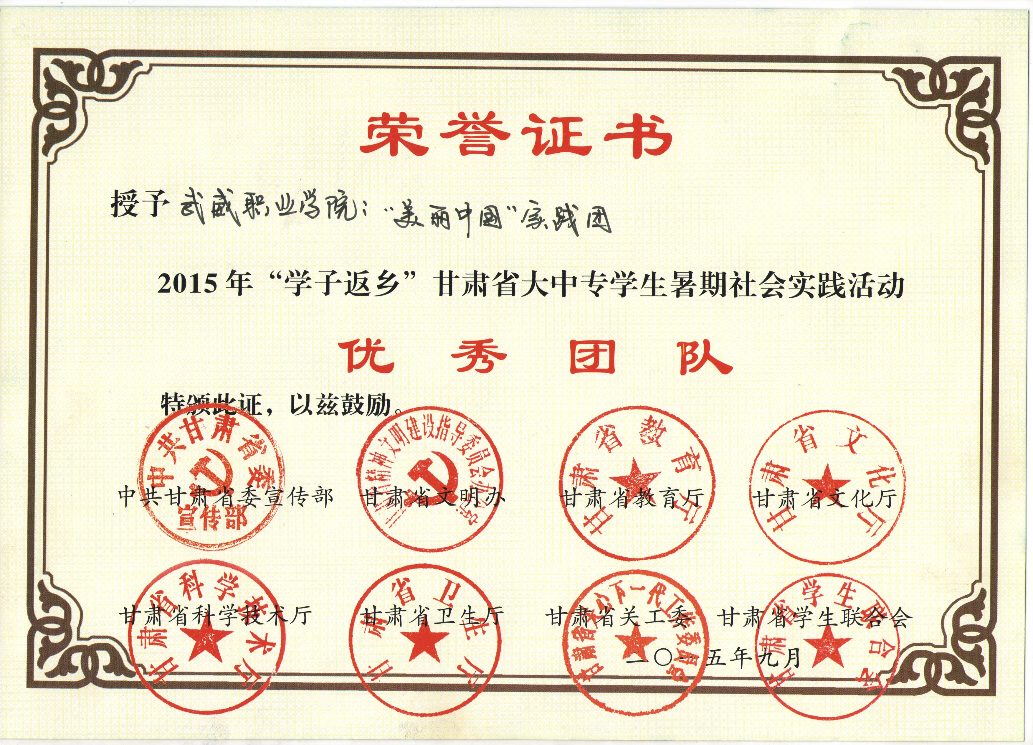 甘肅省大學(xué)生暑期文化科技衛(wèi)生“三下鄉(xiāng)”活動優(yōu)秀團隊