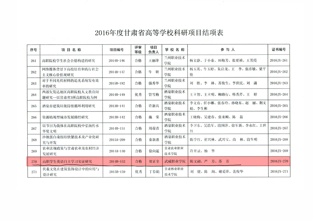 甘肅省教育廳關于2016年度甘肅省高等學??蒲许椖拷Y項情況的通知